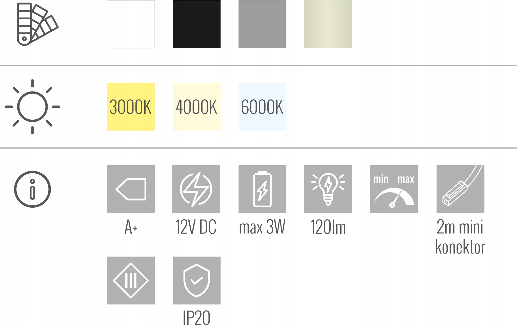 Можливість легкого підключення кількох лампSLL02 дозволяє створювати комплексні рішення освітлення, ідеальні для великих приміщень, таких як кухні, вітальні чи вітрини. Сумісність із системами живлення 12 В постійного струму та використання роз’ємів mini AMP полегшує реалізацію будь-якого проекту освітлення.