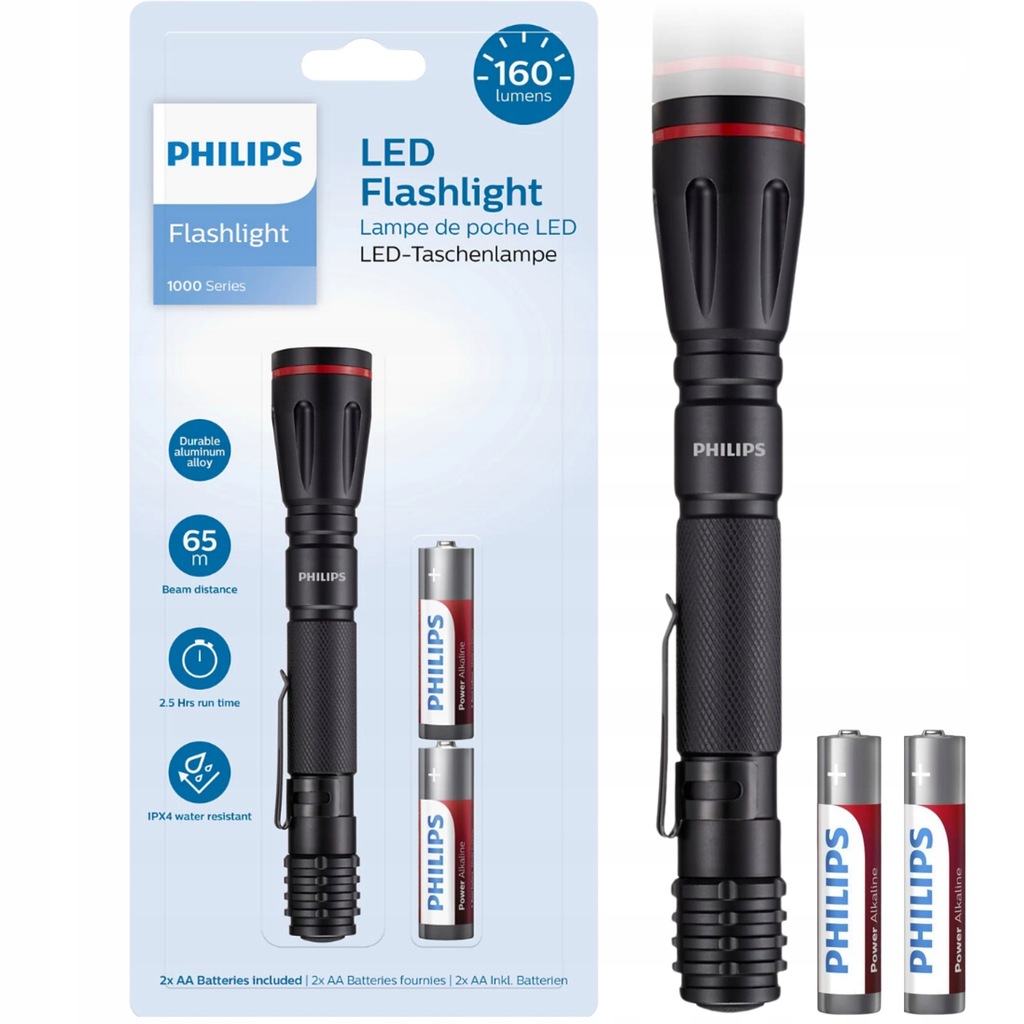 СВІТЛОДІОДНИЙ ЛІХТАРИК PHILIPS 160 лм МІЦНИЙ МЕТАЛЕВИЙ ВОДОСТІЙКИЙ КОМПЛЕКТ + БАТАРЕЇ AA