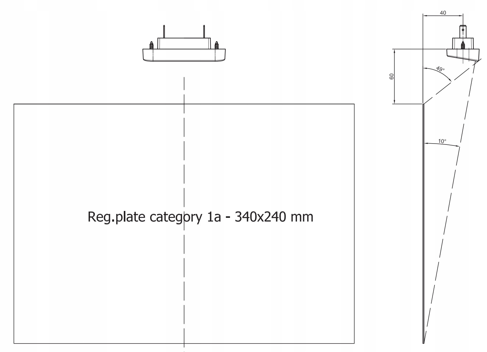 - Виріб можна встановити як збоку, так і зверху від номерного знака.