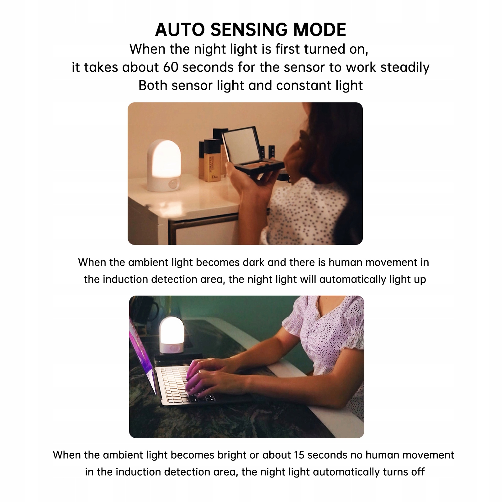1. ВИСОКА ЧУТЛИВІСТЬ: нічник із світлодіодним датчиком має вбудований датчик високої чутливості, який автоматично визначає рух людини та автоматично вмикається та вимикається.