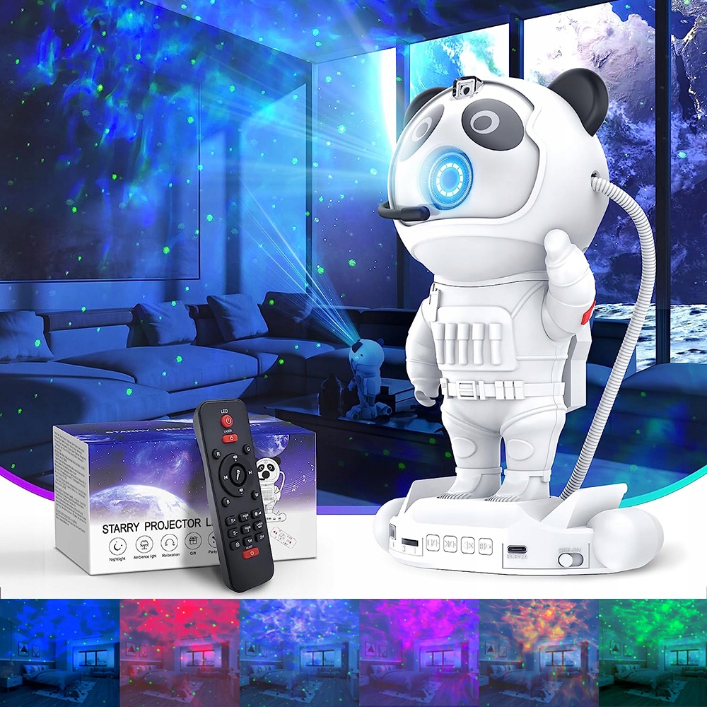 👧👩👦🤴 [Унікальний дизайн]: Galaxy Starry Projector має форму чарівної панди-космонавта. Зірковий проектор виготовлений з матеріалів ABS і PC. Безпечний, нешкідливий і довговічний. Зоряний проектор підключається магнітно. Кронштейн проектора можна обертати, щоб позувати в потрібному положенні.