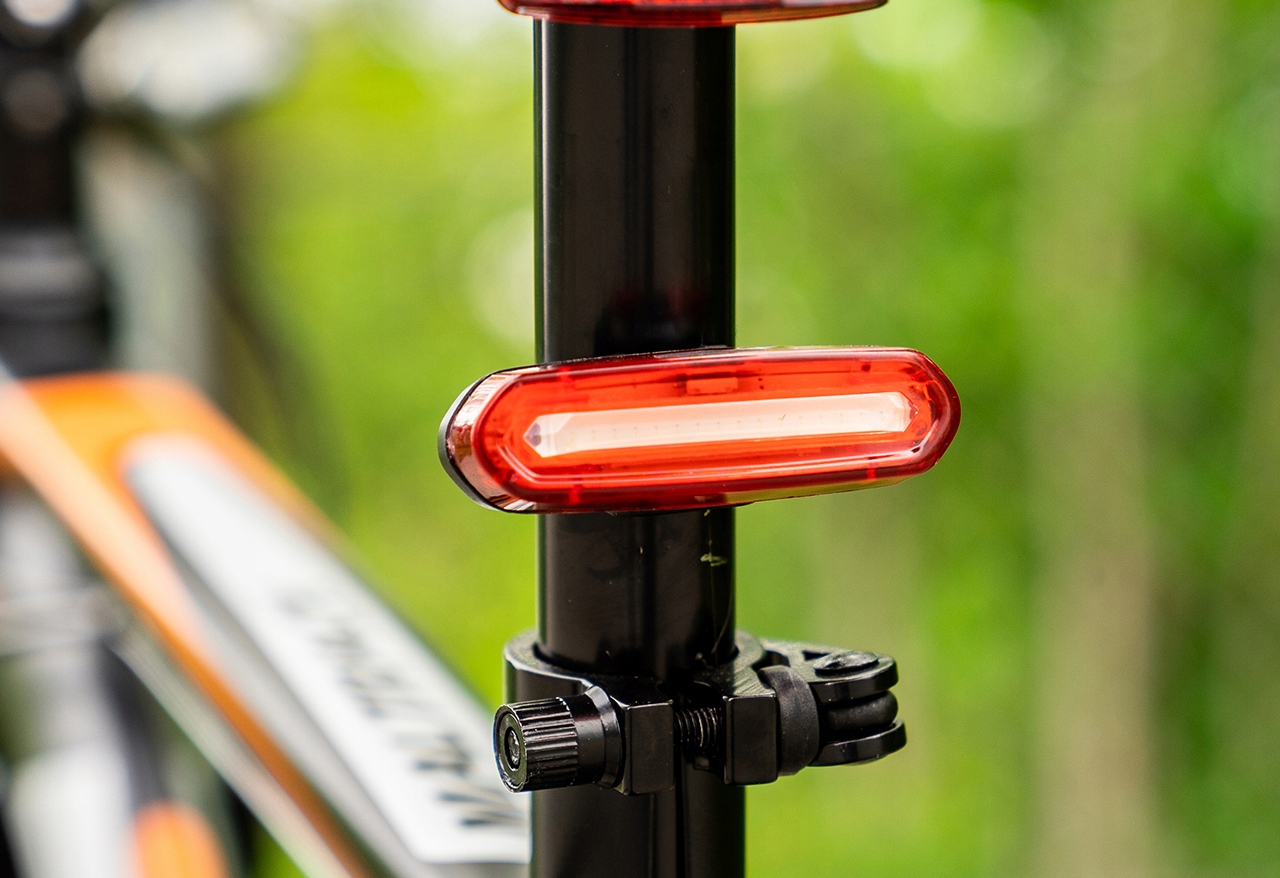 Щоб увімкнути або вимкнути світло, утримуйте кнопку на лампі. Наші велосипедні ліхтарі мають аж 4 режими червоного світла та 5 режимів білого світла!