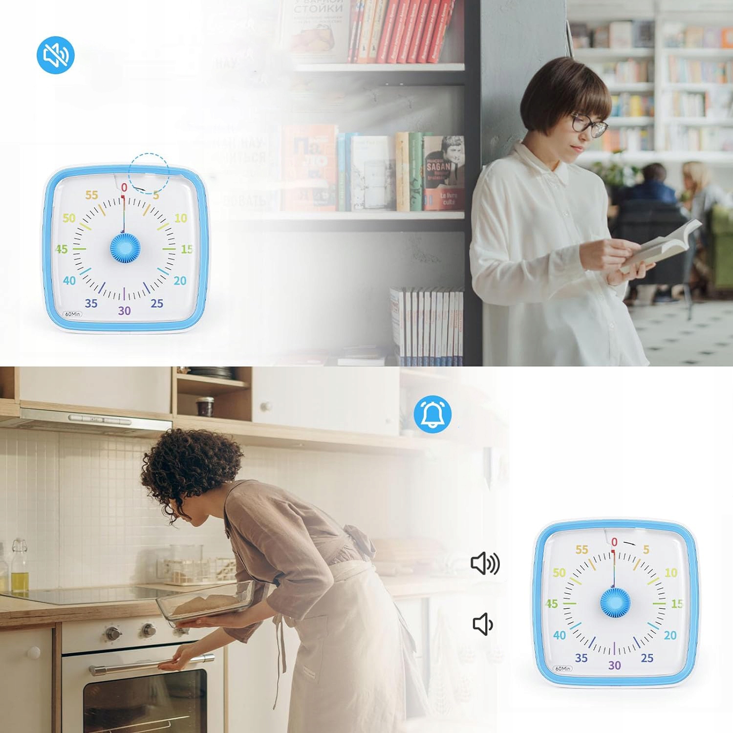 ⏲️Візуальний таймер має3 режими дзвінка: без звуку, без звуку, гучно. Ви можете вибрати потрібний режим. Порівняно з іншими таймерами, цей таймер має функцію призупинення виклику одним дотиком. Коли дзвонить у двері, ви можете натиснути верхню кнопку, щоб призупинити його, щоб будильник не звучав занадто коротко чи надто довго.
