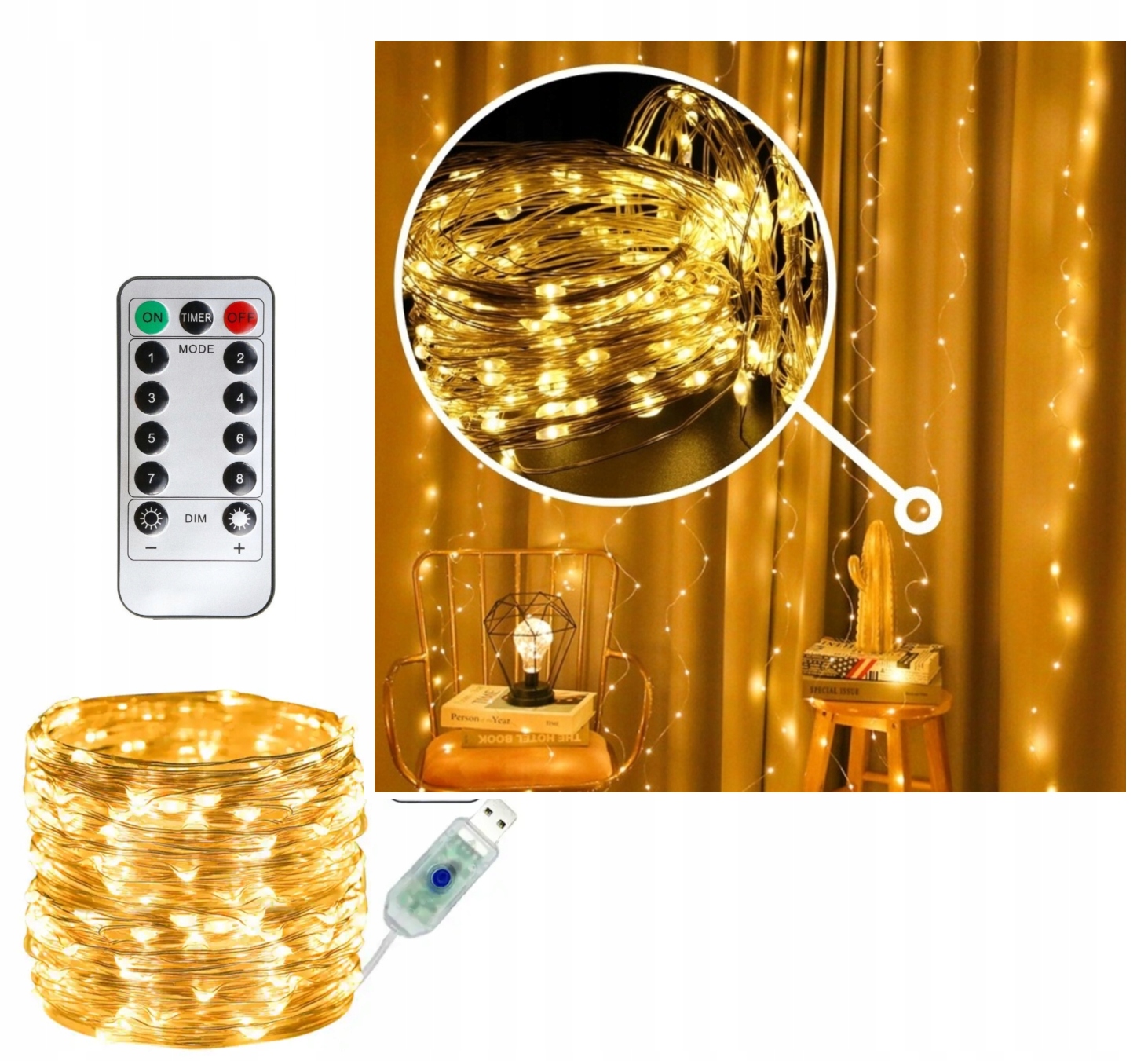 СВІТЛОВА ЗАВІСА 120LED 3х1м ТЕПЛИЙ БІЛИЙ ЛАМПИ + ПУЛЬТ