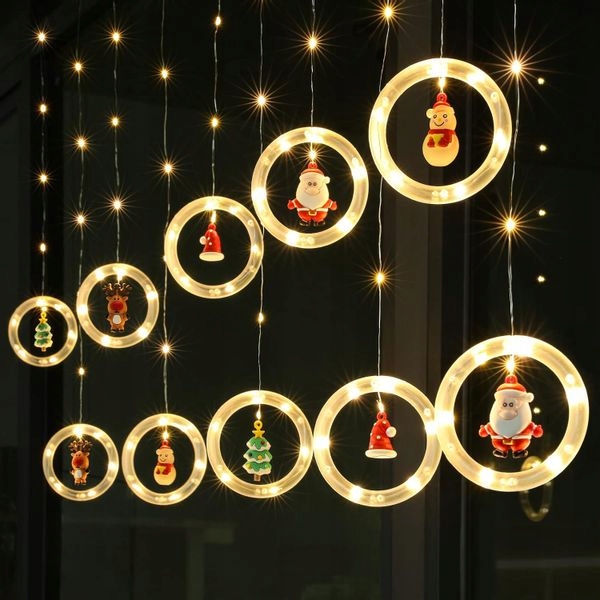 СВІТЛОВА ЗАВІСА З ФІГУРКАМИ РІЗДВЯНА ГІРЛЯНДА НА ВІКНО ЗОВНІШНІЙ БАЛКОН