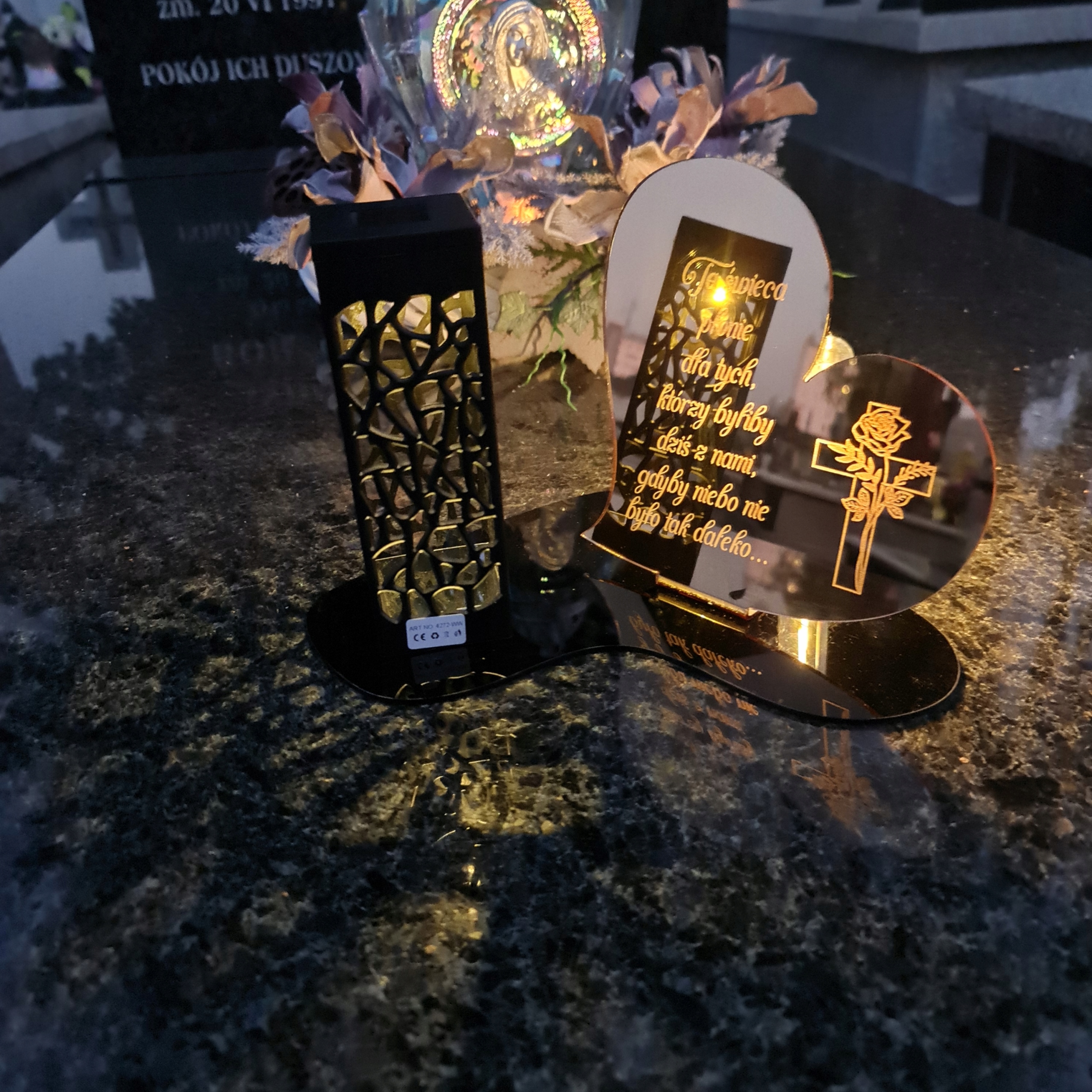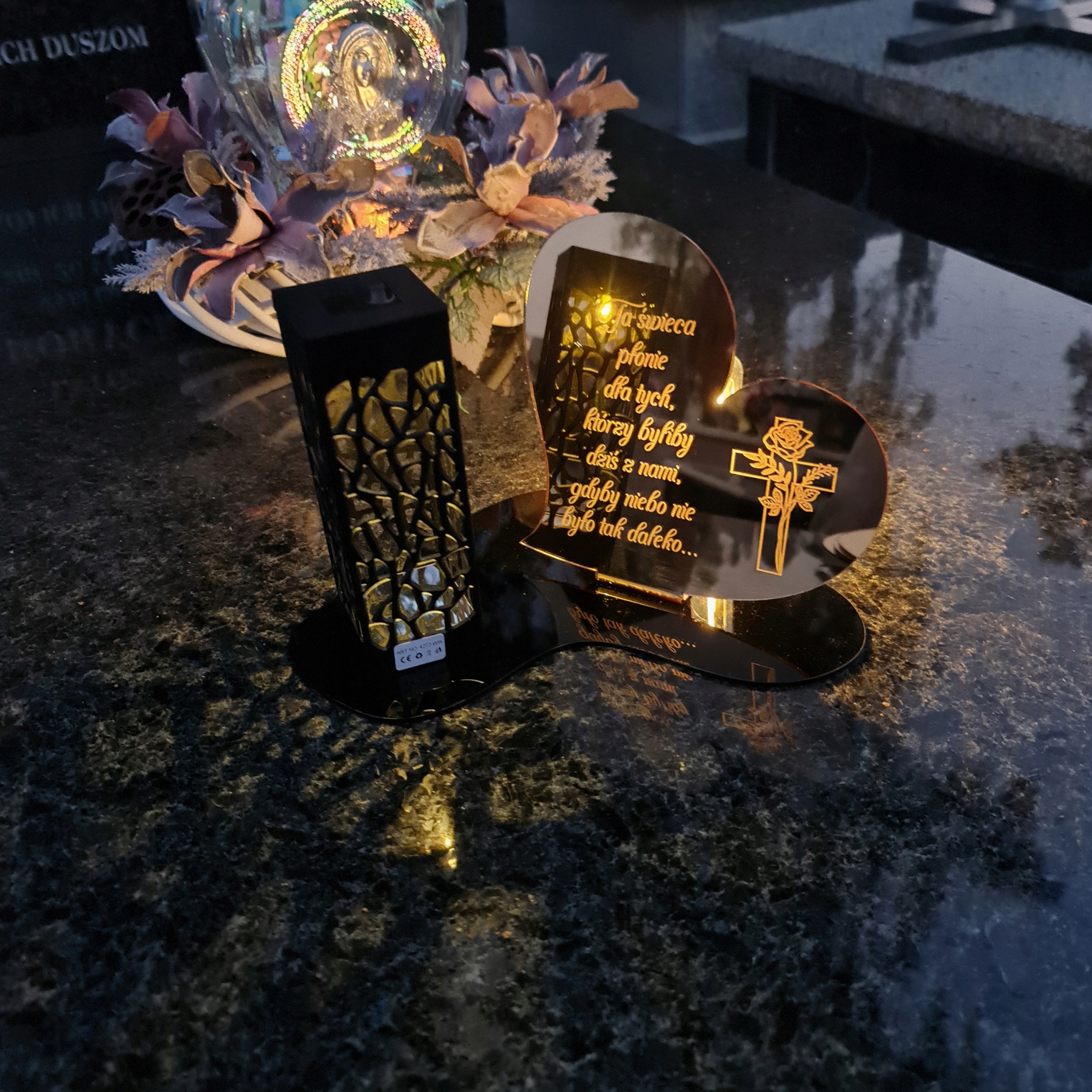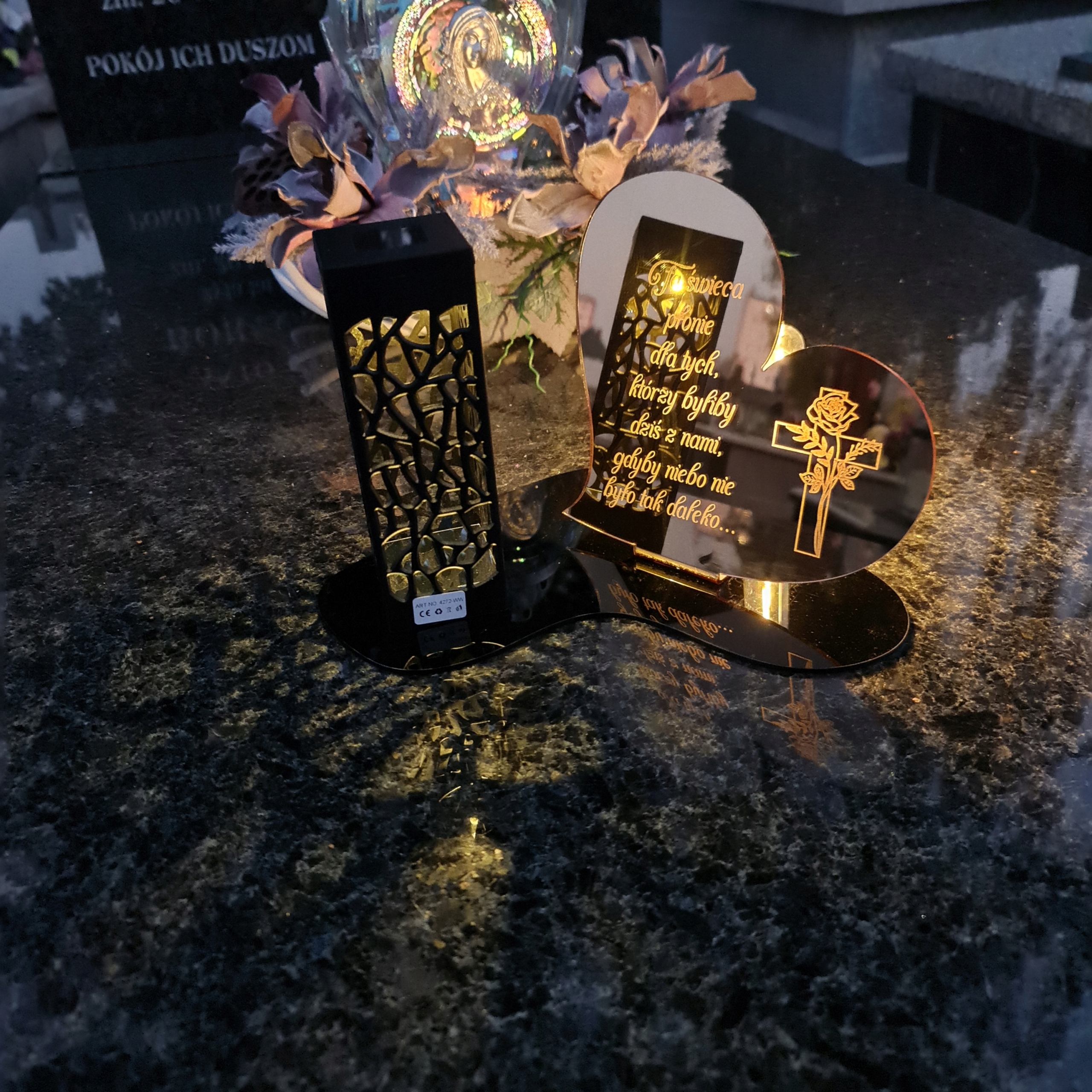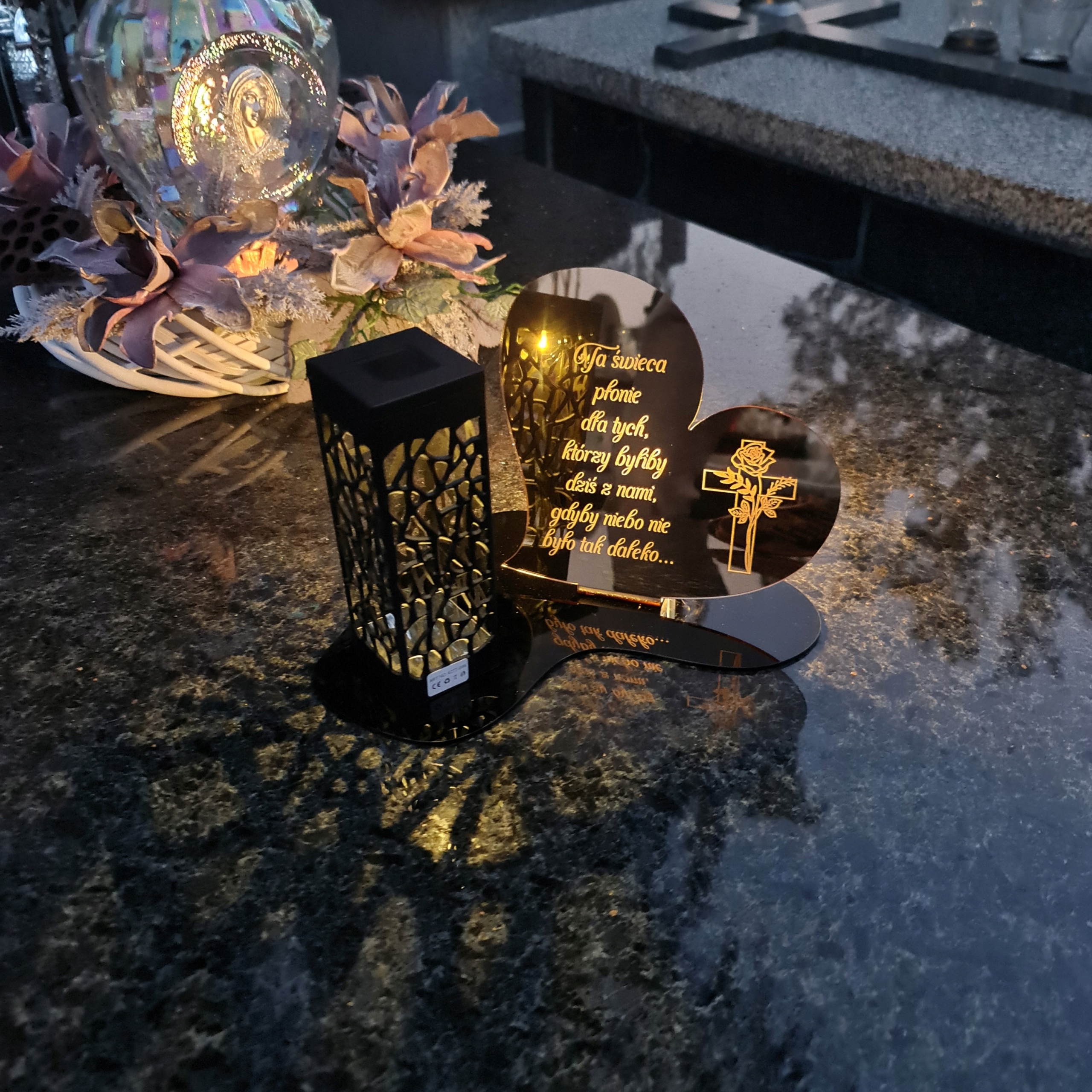 Вічна свічка на могилі з гравірованою акриловою скляною підставкою