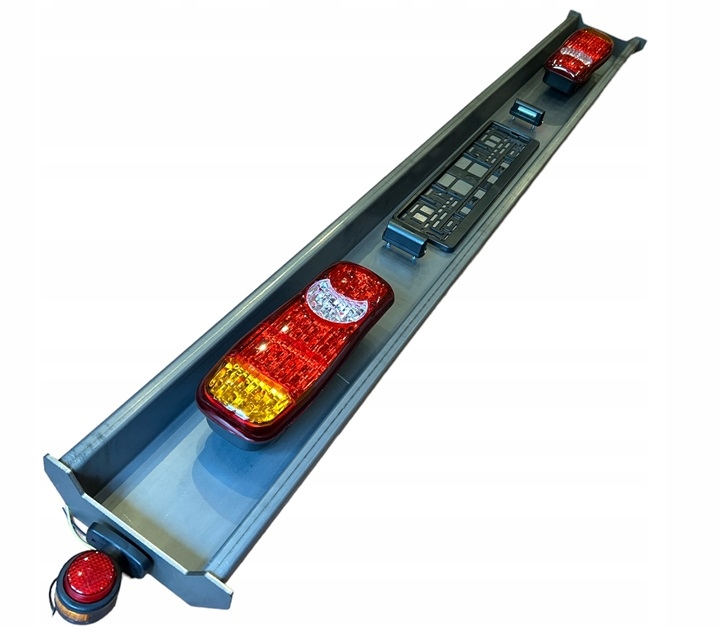 Світловий промінь із набором світлодіодних задніх світильників, з світлодіодними світильниками підсвічування номерного знака, бічного контуру, кінця променя та рама під реєстраційною табличкою.