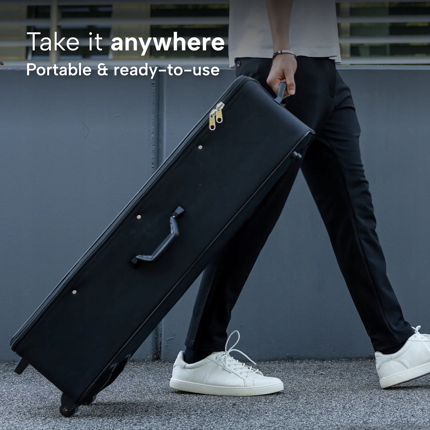 Оскільки час має велике значення, а мобільність є важливою під час живих виступів, ми розробили Lightwall таким, щоб його можна було легко транспортувати та встановити за 10 хвилин. Усе, що вам потрібно, включено в коробку, включаючи чорну алюмінієву раму, яка є легкою та міцною, вантажами для води для додаткової стабільності, контролером Twinkly Music і ключом, і все це в візку, готовому для подорожей.
