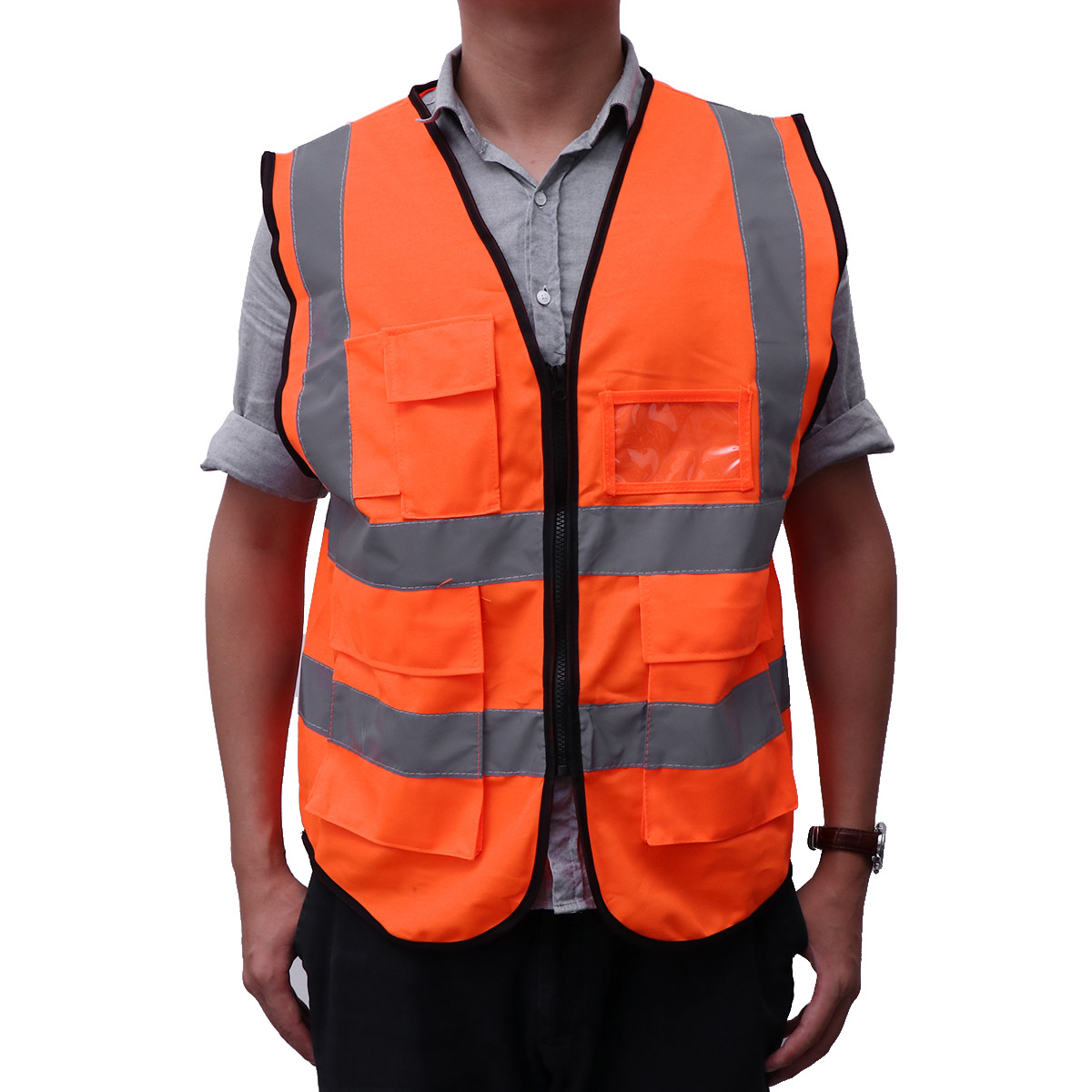 ✅ Міцна передня застібка-блискавка з міцним зміцненням стрічкою та люверсом Dring, спеціально розроблений світловідбиваючий матеріал світловідбиваючого жилета, значно покращує видимість удень і вночі.