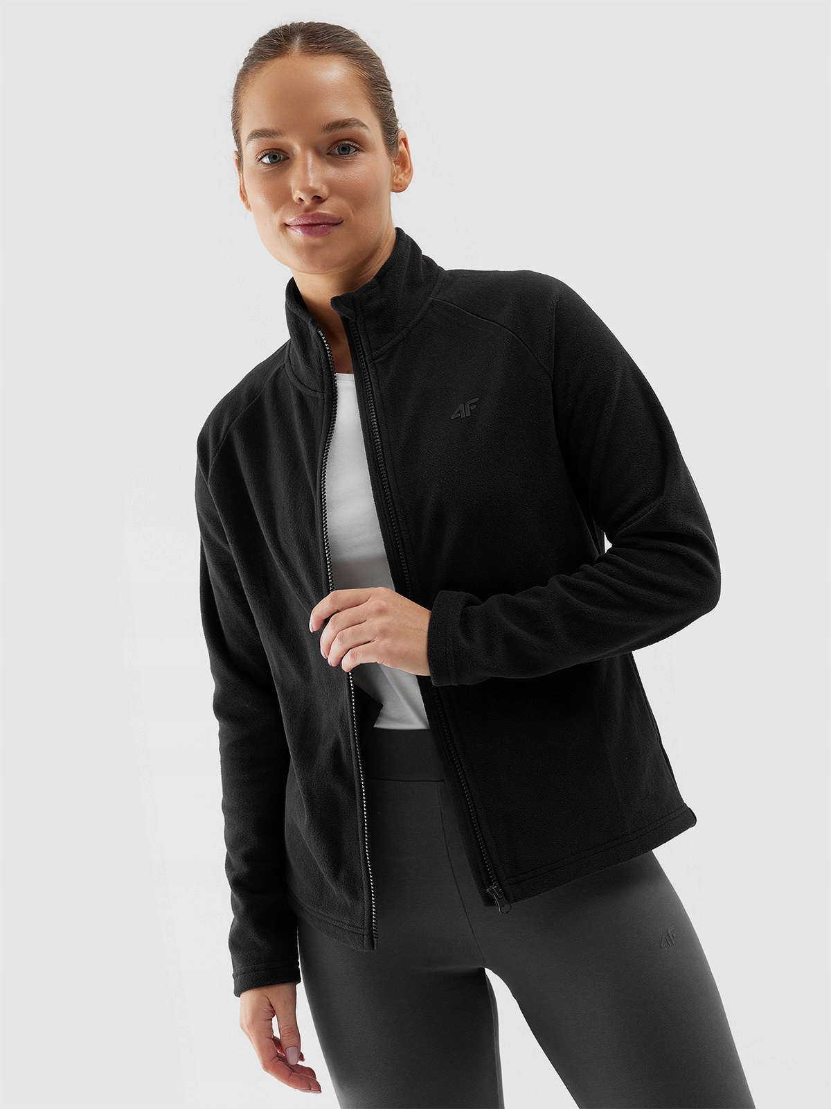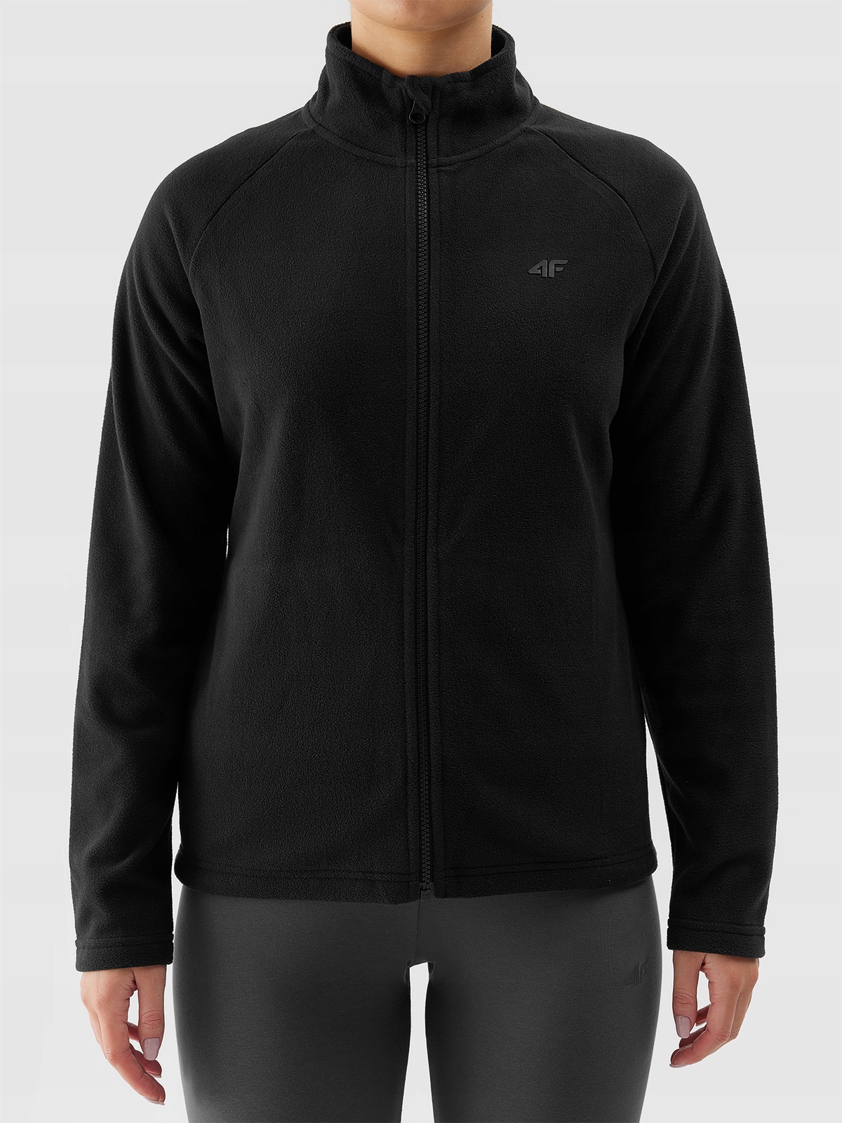 СВІТШОТ ЖІНОЧИЙ 4F ФЛІСОВИЙ З КОМІРОМ-СТІЙКОЮ ЗВИЧАЙНИЙ БЕЗ КАПЮШОНУ, ЧОРНИЙ