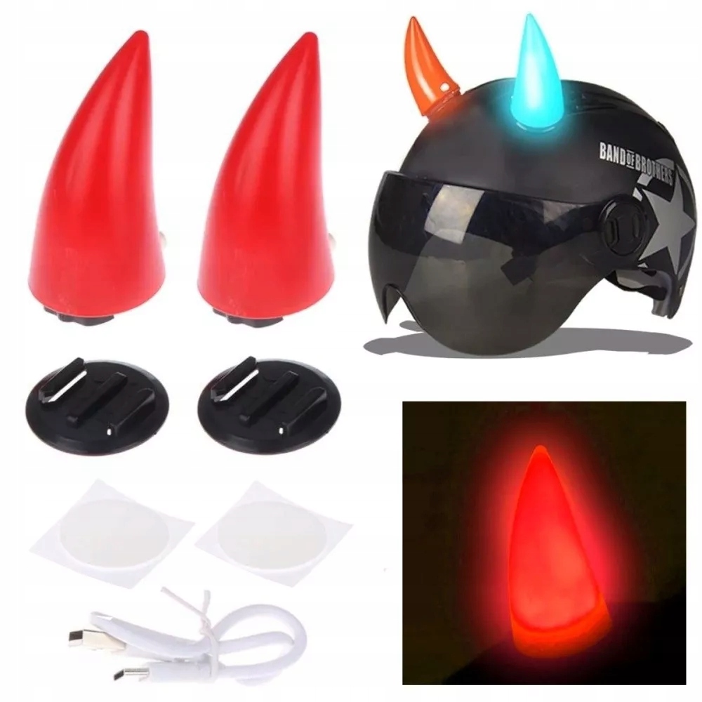 Ріжки пластикові декоративні з LED підсвічуванням. Кріпиться на шолом двостороннім скотчем (в комплекті). Вони виготовлені з пластику і мають форму ріжків. Основна функція — прикрашати шолом і забезпечити безперервне світло. Кожен кут оснащений вимикачем і роз'ємом USB C для зарядки вбудованого акумулятора.
