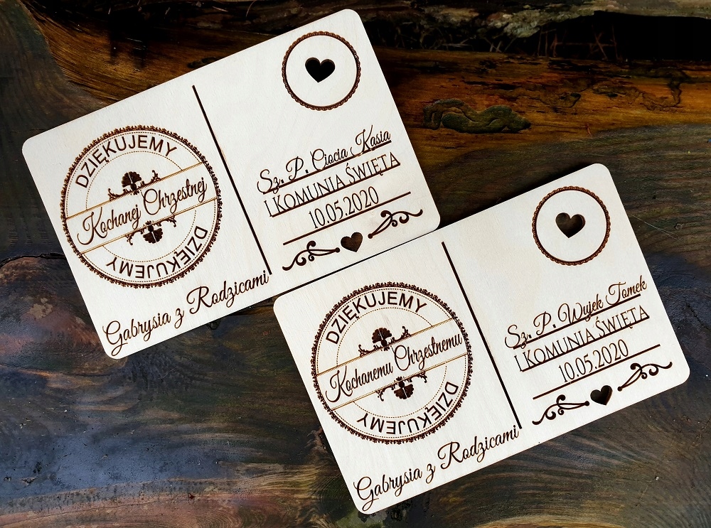 Наші листівки виготовлені з деревини берези. Після того, як ми зробили професійне гравіювання, ми очищаємо картку та вручну шліфуємо її до однорідності... з обох сторін.