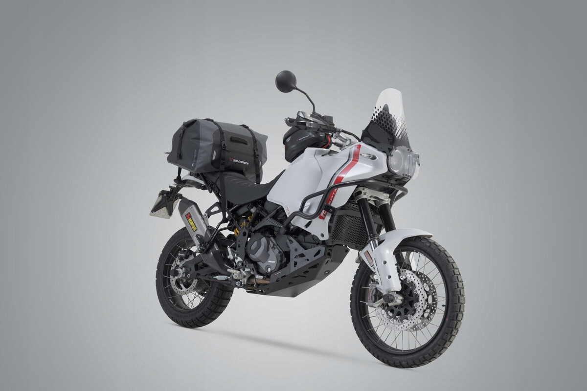 Drybag 350 кріпиться до вашого мотоцикла лише кількома простими кроками та пропонує багато місця для основних аксесуарів для подорожей. Задня сумка доступна в сірому та жовтому кольорах і може поєднуватися як з більшими, так і з меншими моделями із серії Drybag. Бічна кишеня на блискавці забезпечує швидкий доступ до особистих речей, а практична ручка для перенесення дозволяє легко транспортувати сумку вручну.