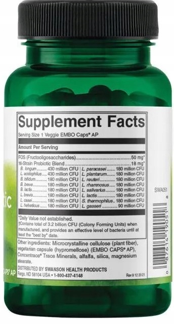 Просматривая «Swanson ULTIMATE 16 STAIN PROBIOTIC ПРОБИОТИКИ 16 ШТАММОВ + МИНЕРАЛЫ 60 капсул», вы можете быть уверены, что данный товар из каталога «Мочевая система» будет доставлен из Польши и проверен на целостность. В цене товара, указанной на сайте, учтена доставка из Польши. Внимание!!! Товары для Евросоюза, согласно законодательству стран Евросоюза, могут отличаться упаковкой или наполнением.