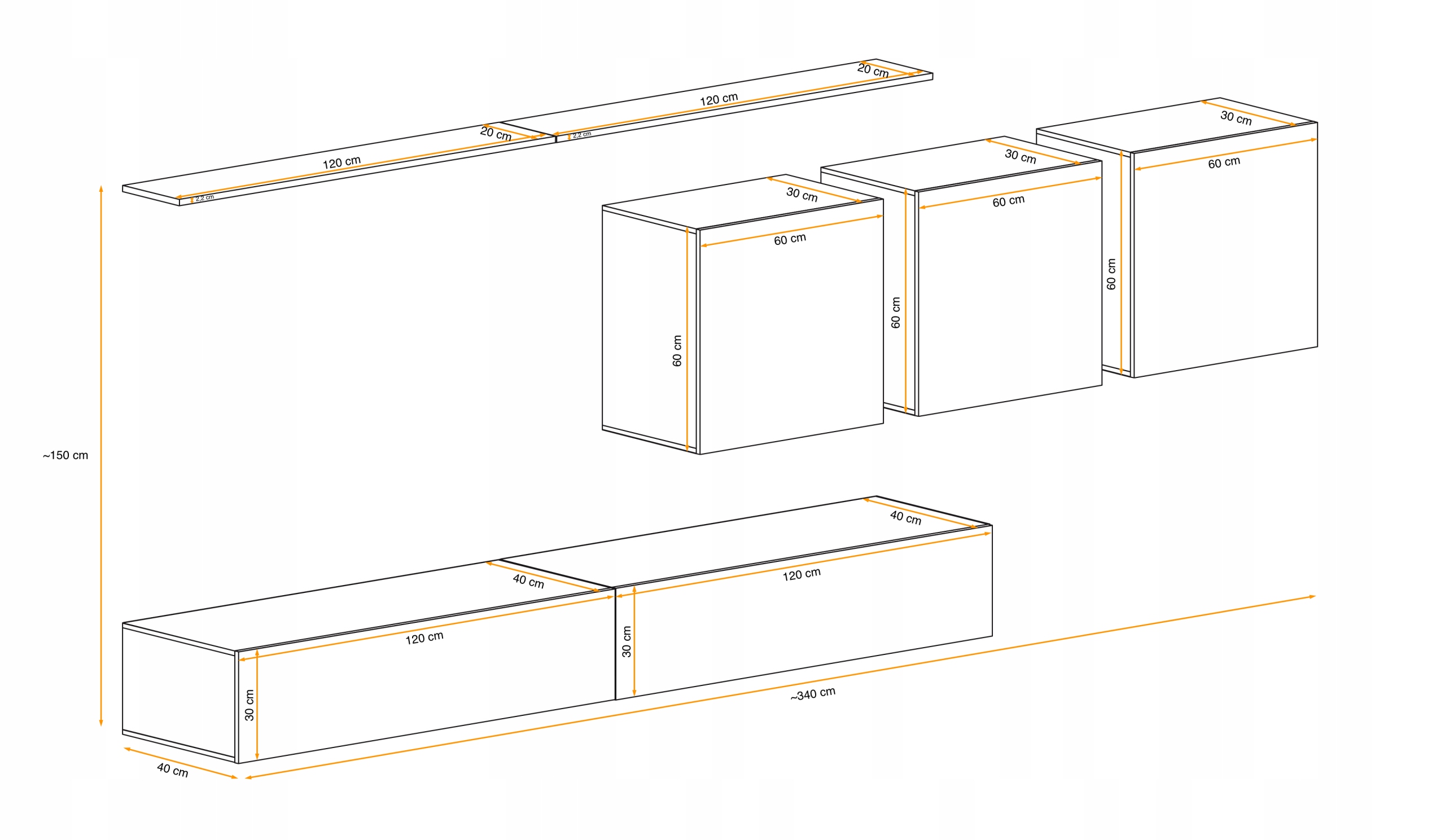 Загальні розміри (S/W/G): ~ 330 см/~ 150 см/40см