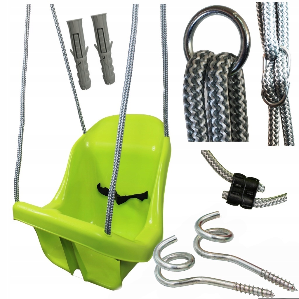 Навіть наймолодші діти можуть розгойдуватися в цій комфортній та безпечній гойдалці. Відро -гойдалки є яскравими, інтенсивними кольорами та безпекою для кожного малюка під час безтурботних ігор. Ремінь безпеки