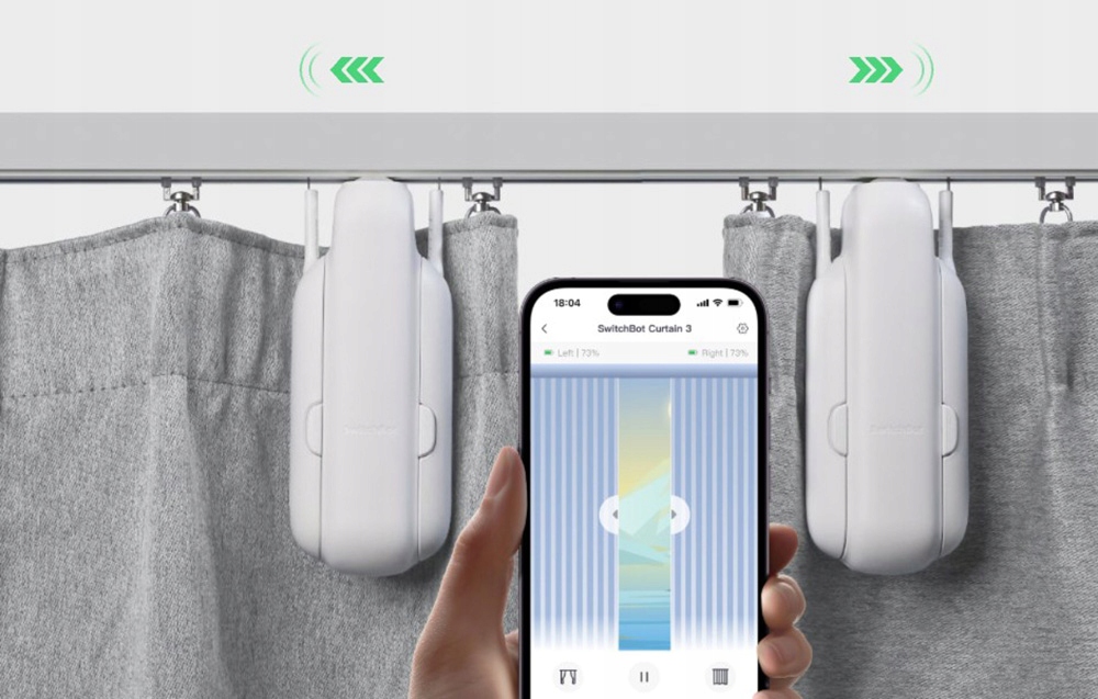 Ви вже лежите в зручному ліжку, але забули закрити вікна? Немає проблем – якщо ви користуєтеся SwitchBot, просто дістаньте свій телефон! Тепер ви можете зручно керувати своїми шторами через додаток. Крім того, окремо доступний невеликий пульт SwitchBot Remote, який також дозволяє дистанційно керувати системою.