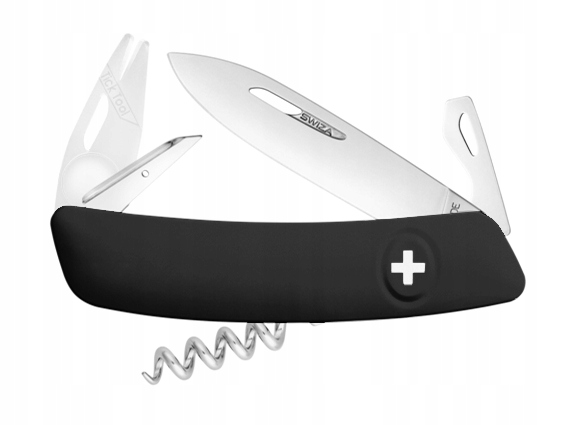 версія в чорному кольорі. Все завдяки суцільній конструкції, заблокованому лезу з оптимальною довжиною 75 мм та ретельно вибраними функціями. Він лежить у руці. На тлі конкуренції є інтегровані кліщі з збільшенням скла (інструмент галочки) , що дозволяє безпечно видалити небезпечний паразит і ретельно переглянути місце укусу . Швейцарський університет, який роками спеціалізується на дослідженні цих небезпечних арахнідів. Завдяки цьому видалення галочки просте та безболісне . Це вимагає натискання інструменту до шкіри (над галочкою) та ніжного перемикання. Плоский, дротяний згинальний апарат і штопор. Лезо та всі інструменти виготовлені з твердої нержавіючої сталі 440, затверділи для твердості 57 HRC . Забезпечує досить тривалий фокус, силу та стійкість до механічних пошкоджень. Замок вивільняється натисканням швейцарського хреста, розташованого на ручці.