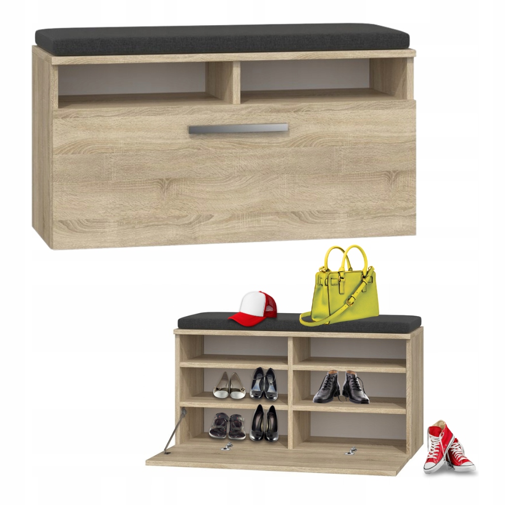 SZAFKA NA BUTY Z SIEDZISKIEM PÓŁKA NA OBUWIE ZE SCHOWKIEM DĄB SONOMA