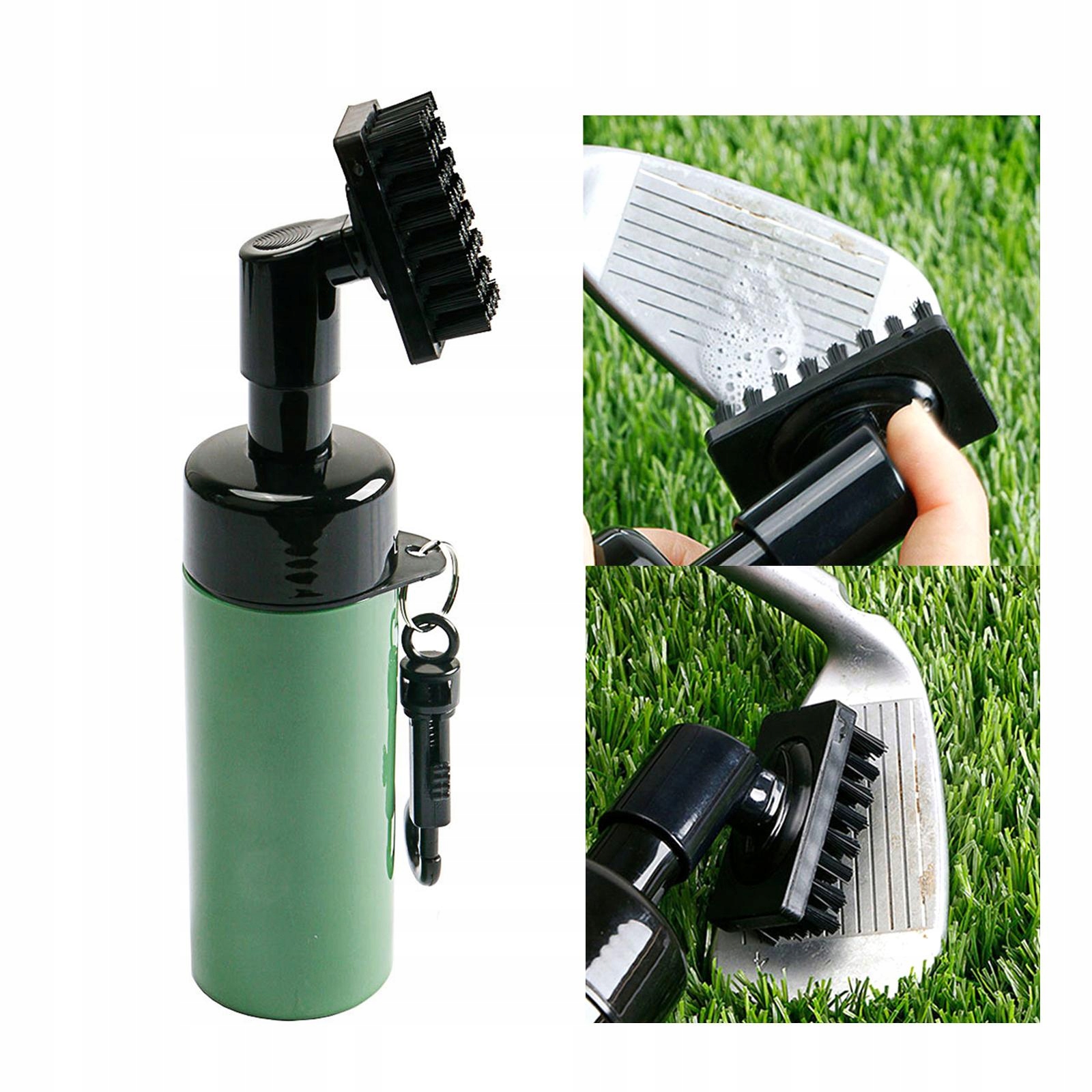 Szczotka do kijów golfowych ze środkiem do czyszczenia rowków i butelką wody Łatwa w obsłudze, zielona
