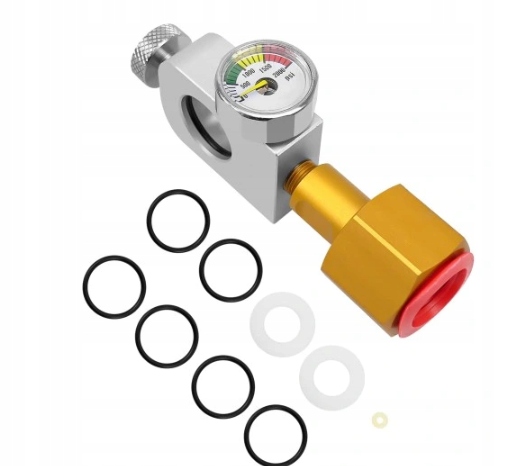 Унікальний дизайн: Адаптер передачі соди має власний манометр, за яким зручно зчитувати значення тиску, який не перевищує рівень тиску на прийомі, безпечний і надійний. Продукт підходить для подачі CO2 з резервуара CO2 в невеликий резервуар CO2. Різьба резервуара з СО2 має відповідати стандарту Європейського Союзу W21.8