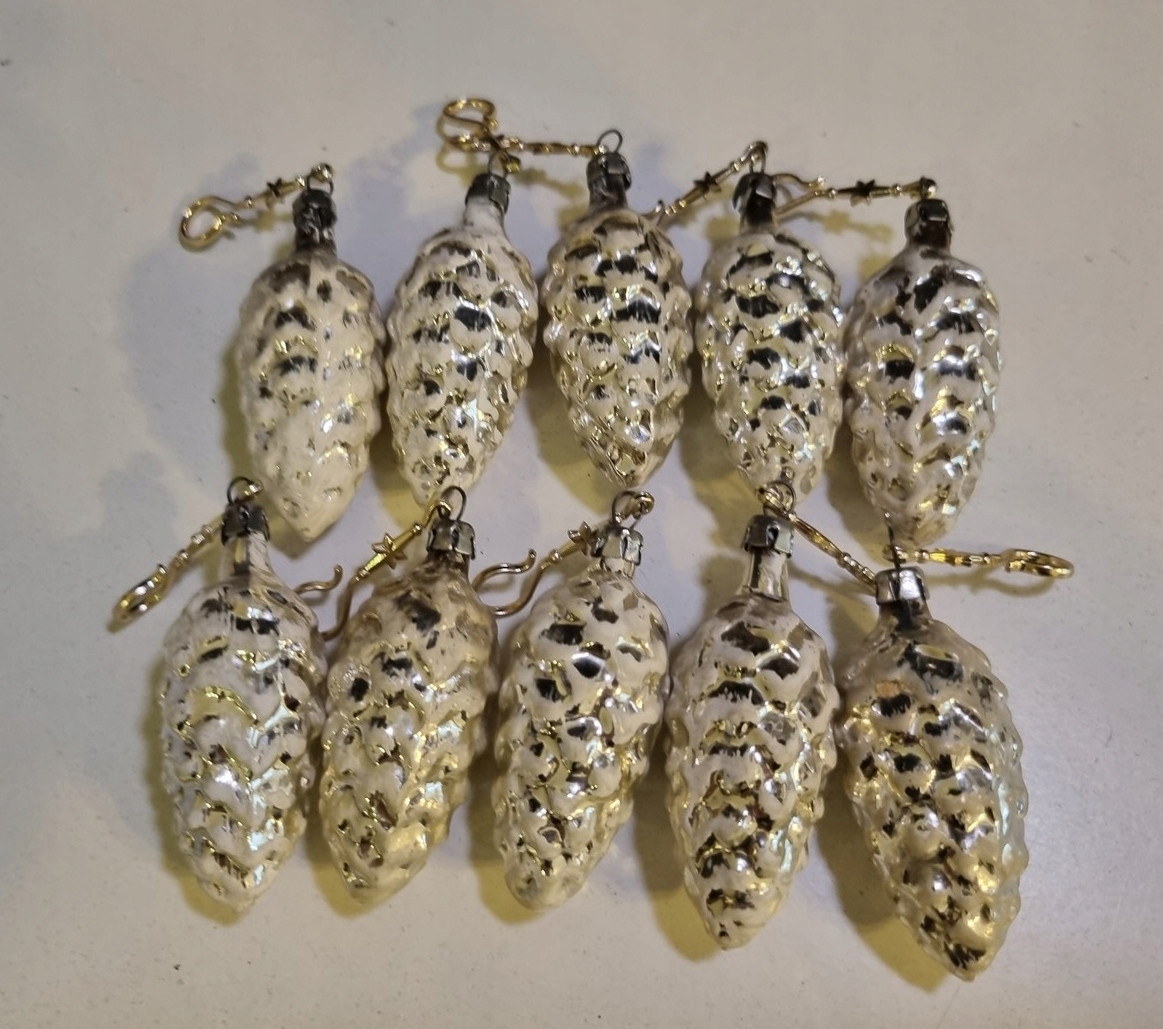 Szyszki 10 szt. Oryginalne stare bombki szklane z PRL 6x3cm