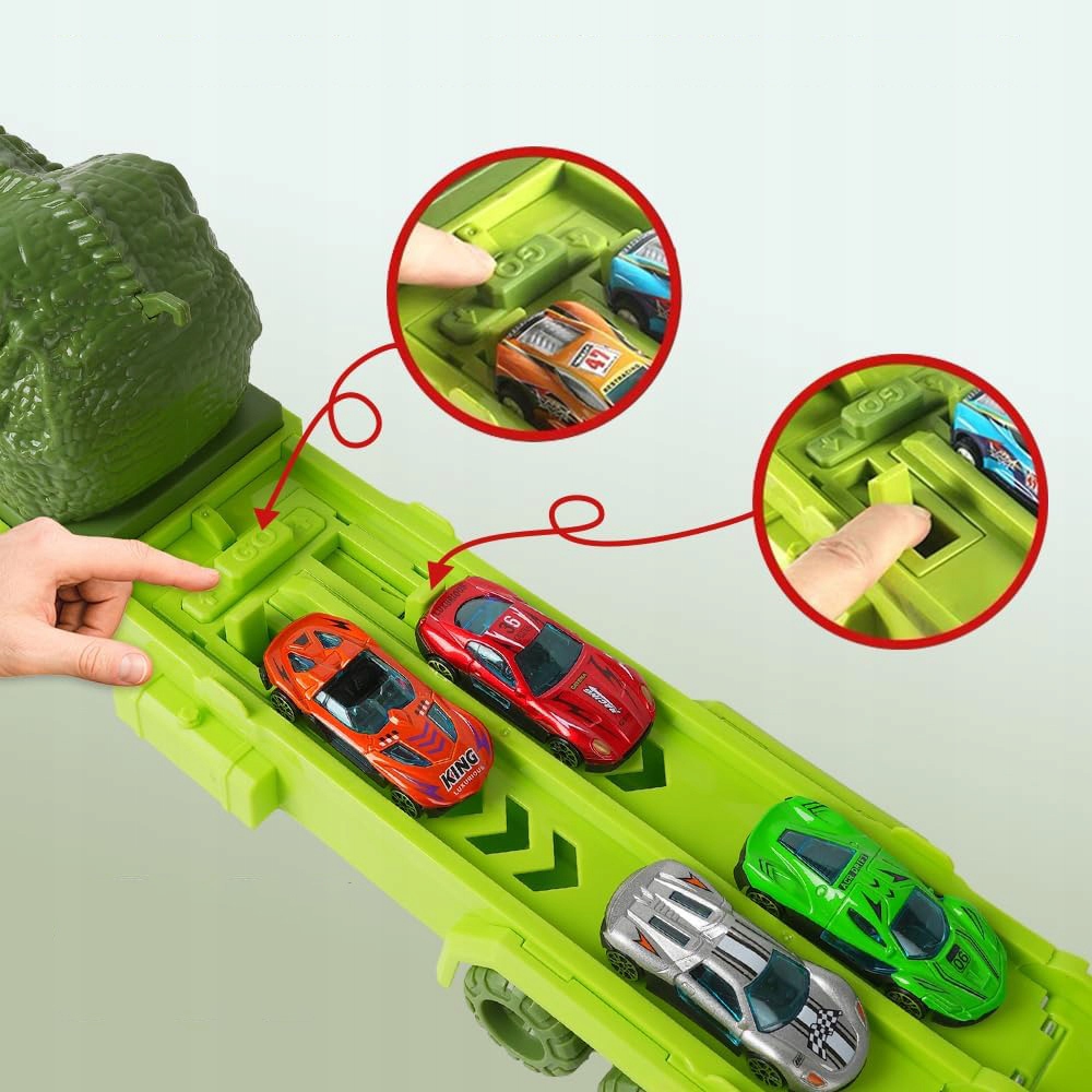 Дитячий динозаврик-транспортер допомагає розвивати координацію рук і очей і дошкільну освіту, зокрема мислення та уяву, креативність, розпізнавання форм, руки -зорова координація та когнітивні процеси. Завдяки практичному розташуванню автомобілів діти можуть удосконалювати свої практичні навички та розпізнавати різні види транспортних засобів.