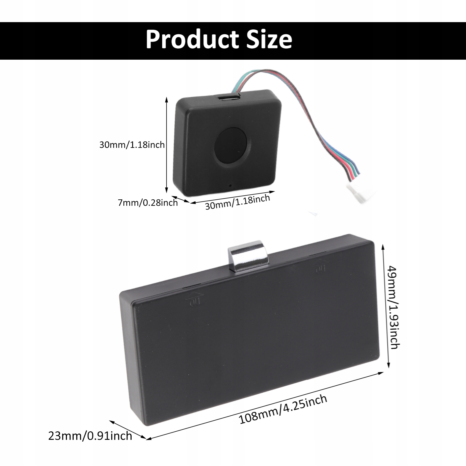 - Розмір панелі відбитків пальців: 30 * 30 * 7 мм / 1,18 * 1,18 * 0,28 дюйма