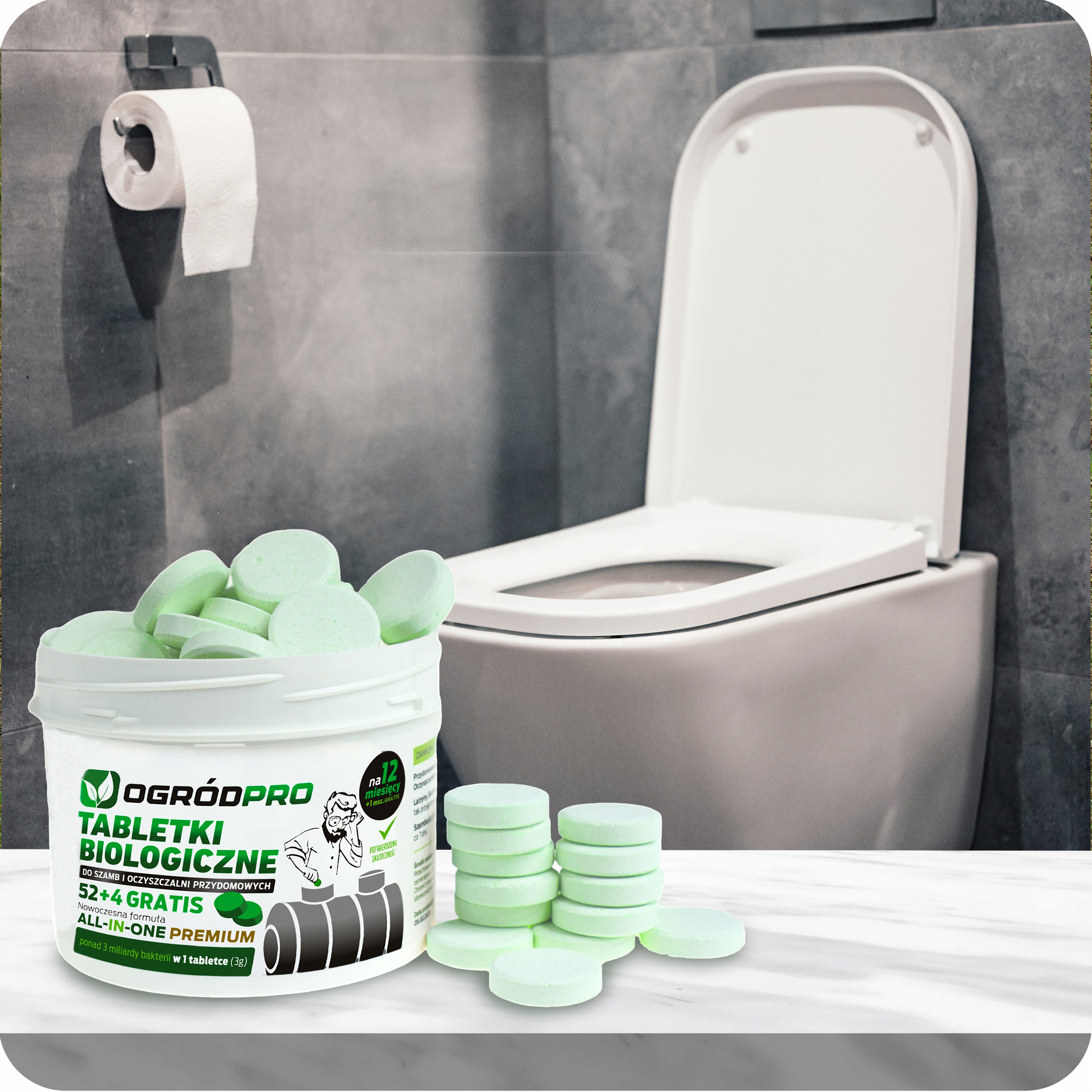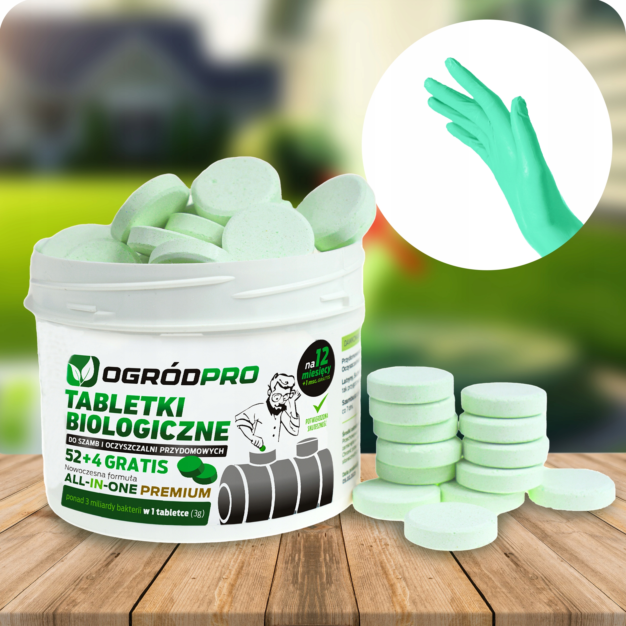 ➔ в біологічних лікувальних установах із системою аерації (аеробні процеси) - завдяки належним чином відібраним бактеріям, садові таблетки підтримують кисень, а також анаеробні мікроорганізми, забезпечуючи ефективне лікування стічних вод протягом року. Вони покращують якість активного осаду в біологічному реакторі, стабілізують роботу кисневих бактерій. У вторинному поселенці вони зменшують відкладення, зменшують поверхневе покриття з овчини. У камері попереднього поселення вони викликають анаеробні бактерії, зменшують жири та зріджуючі стічні води.