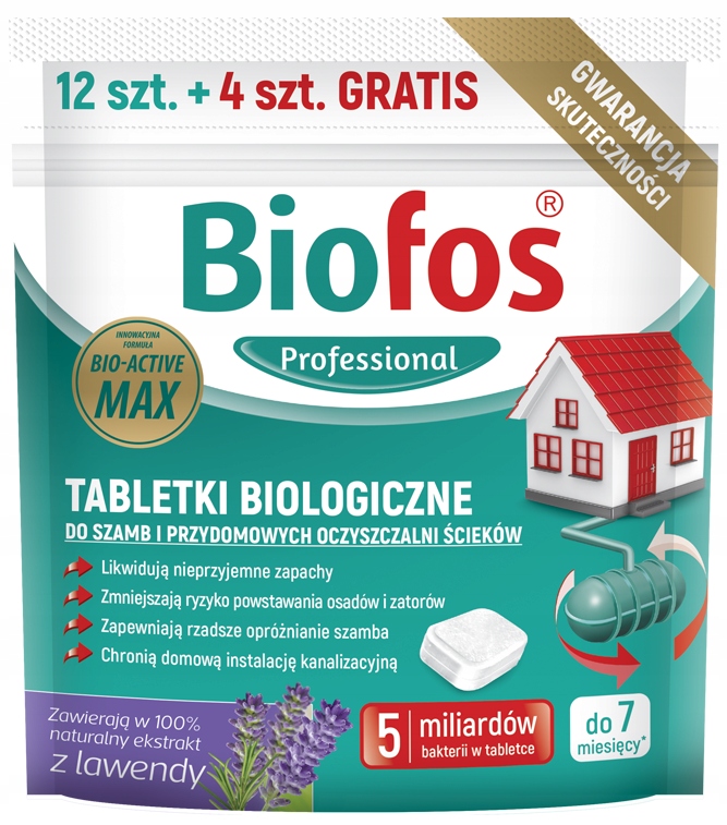 Biofos Professional - це засіб, який характеризується винятковою ефективністю. Одна таблетка препарату містить до 5 мільярдів бактерій , які забезпечують правильну роботу систем очищення. Підготовка виключає неприємні запахи, а також зменшує можливість перевантаженості. Використовуючи Biofos Professional , ви надаєте собі рідше спорожнення септичного танка - ви також запобігаєте ризику покриття овчини. Використовуючи підготовку, ви захищаєте домашню каналізаційну систему та забезпечуєте її належну роботу.