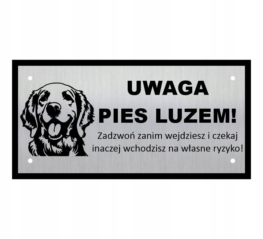 Табличка з написом - УВАГА СОБАКА - на волі! - Золотистий ретривер