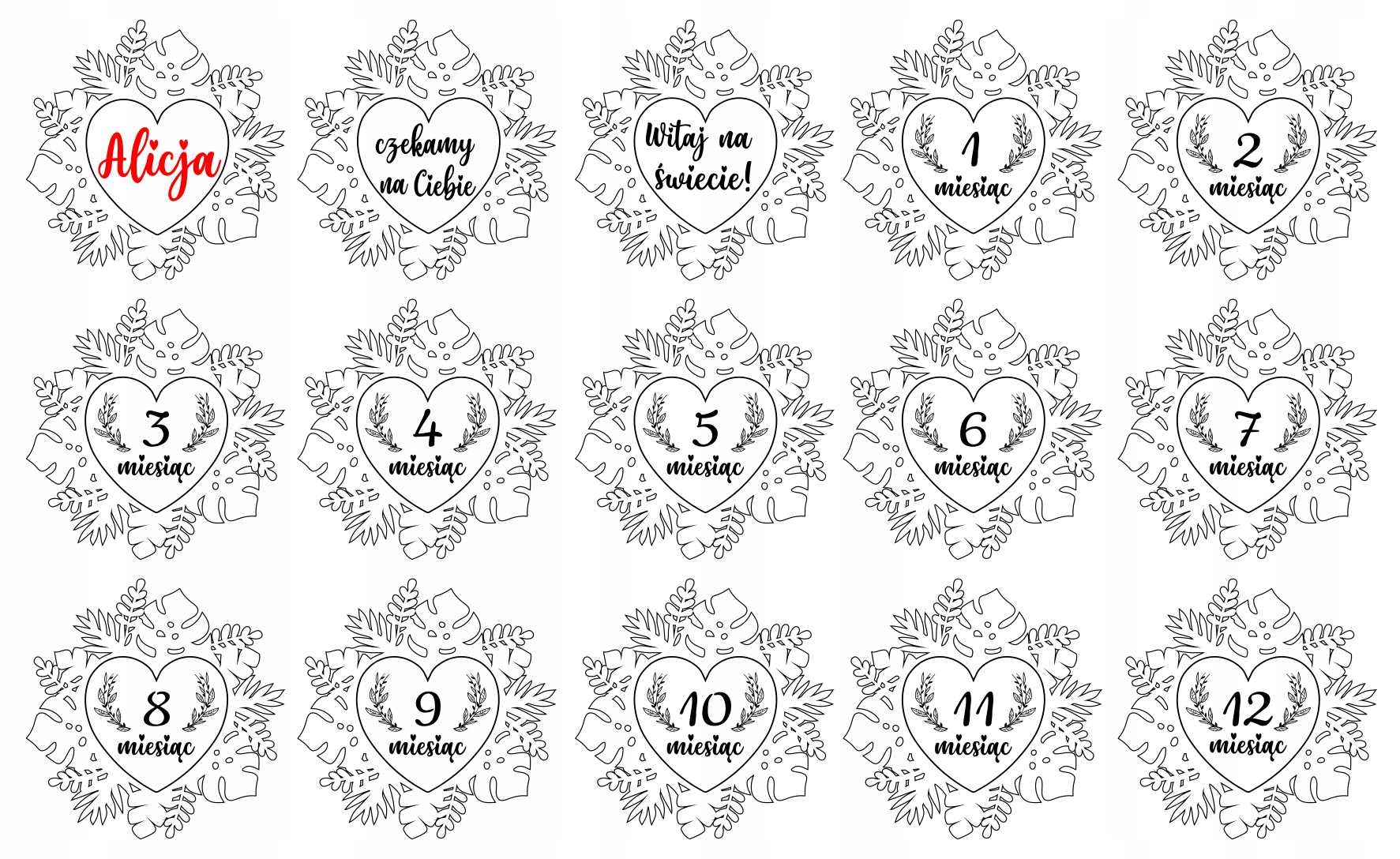 - Набір складається з 15 тарілок("Ми чекаємо на вас", "Ласкаво просимо у світ", табличка з ім'ям + таблички на 12 місяців)