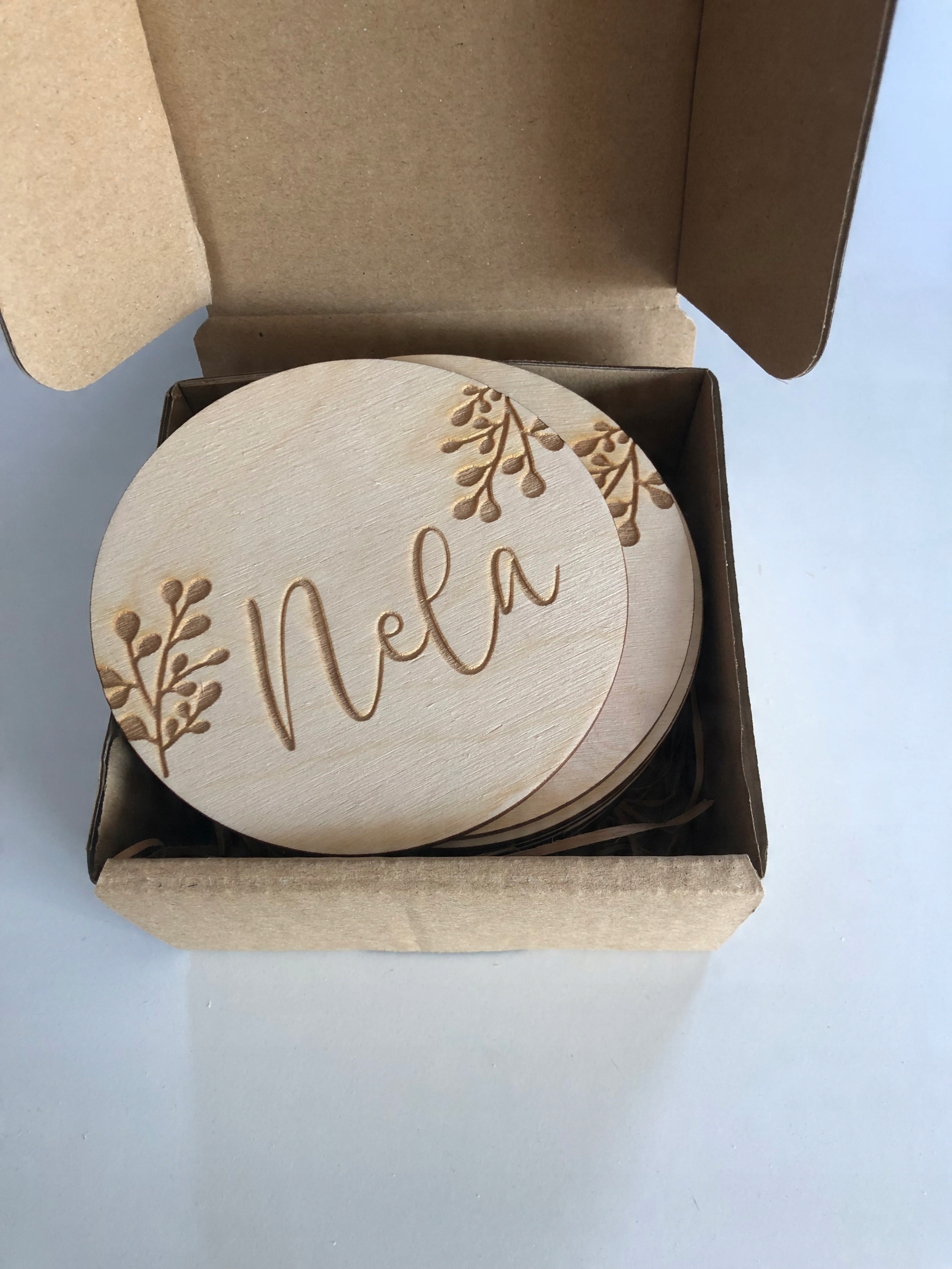 ДЕРЕВ'ЯНІ ТАБЛИЧКИ ДЛЯ ФОТОГРАФІЙ З ПЕРШОГО РОКУ ЖИТТЯ.