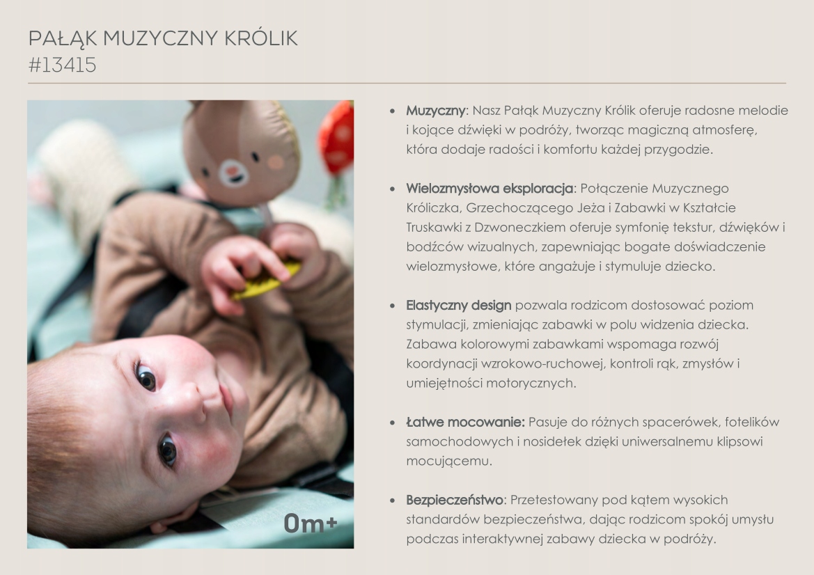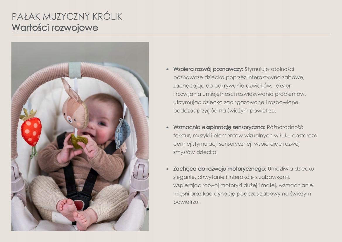 Пов'язка на голову Musical Bunny — це інноваційна іграшка, яка пропонує заспокійливі мелодії та звуки , створюючи приємну атмосферу під час кожної поїздки. Іграшка приносить радість і комфорт вашій дитині, привносячи чарівну атмосферу в повсякденні пригоди.