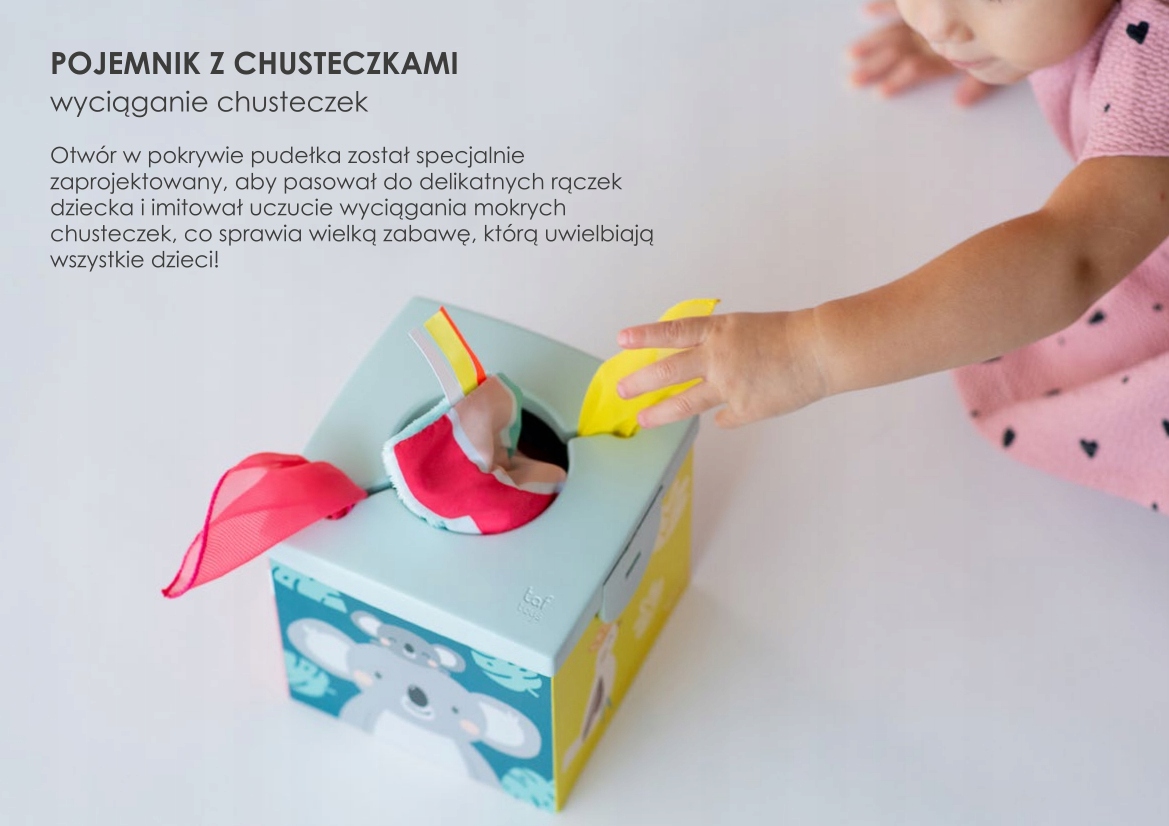 Koala Container of Wipes Kimmy від Taf Toys - ідеальна іграшка для маленьких дослідників, які хочуть досліджувати навколишній світ. Натхненний природною дитячою цікавістю, цей контейнер не лише розважає, але й стимулює розвиток почуттів. Діставати серветки з контейнера — це захоплююча розвага, яка не створює безладу, а головний отвір у кришці ідеально підходить для маленьких рук, що сприяє незалежності.