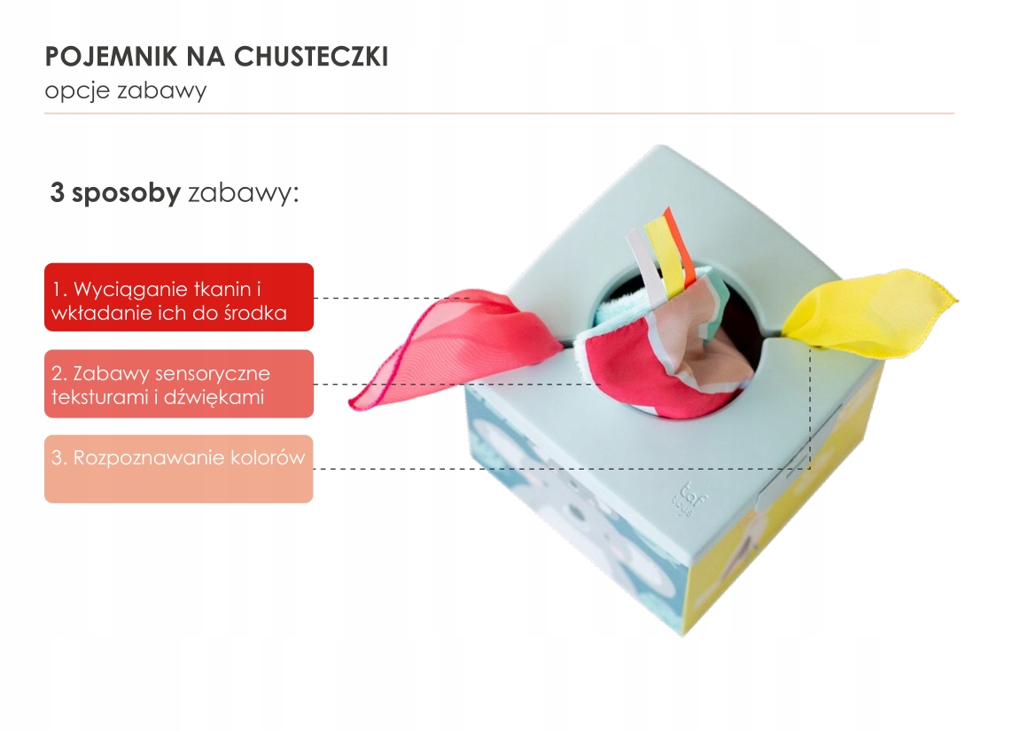 - Навчання кольорам і рахунку: Гра з різнокольоровими тканинами сприяє навчанню розпізнавання кольорів і рахунку, які є ключовими у когнітивному розвитку.