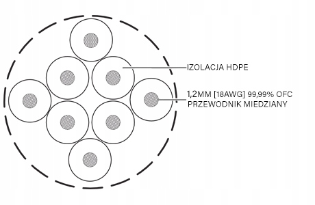 Тип: Мідний восьмигранний динамік кабелю анаеробні міді OFC-8 вен х 1,2 мм на 1 дріт 4 білі та 4 прозорі