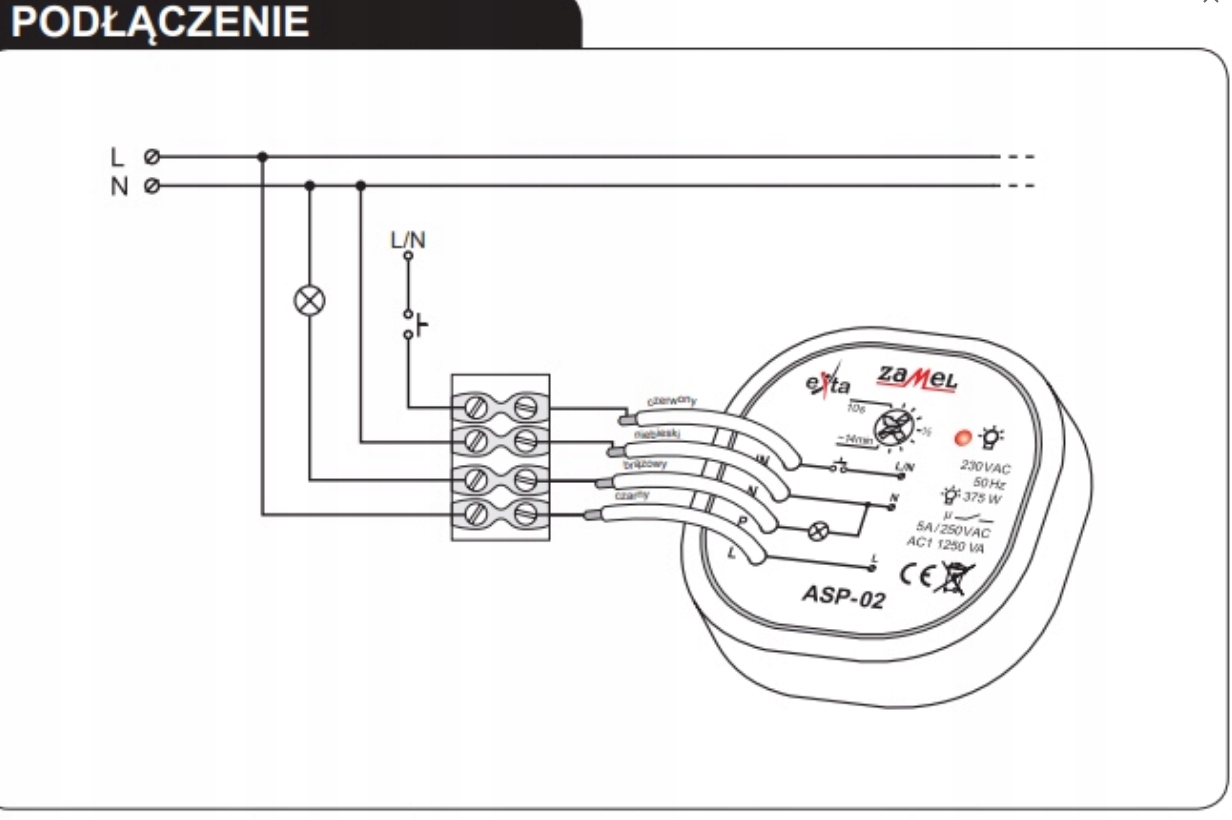 ASP-02 також можна використовувати як реле часу з функцією відкладеного відключення. Конструкція дозволяє встановлювати під кнопку в глибокій інсталяційній коробці fi60.