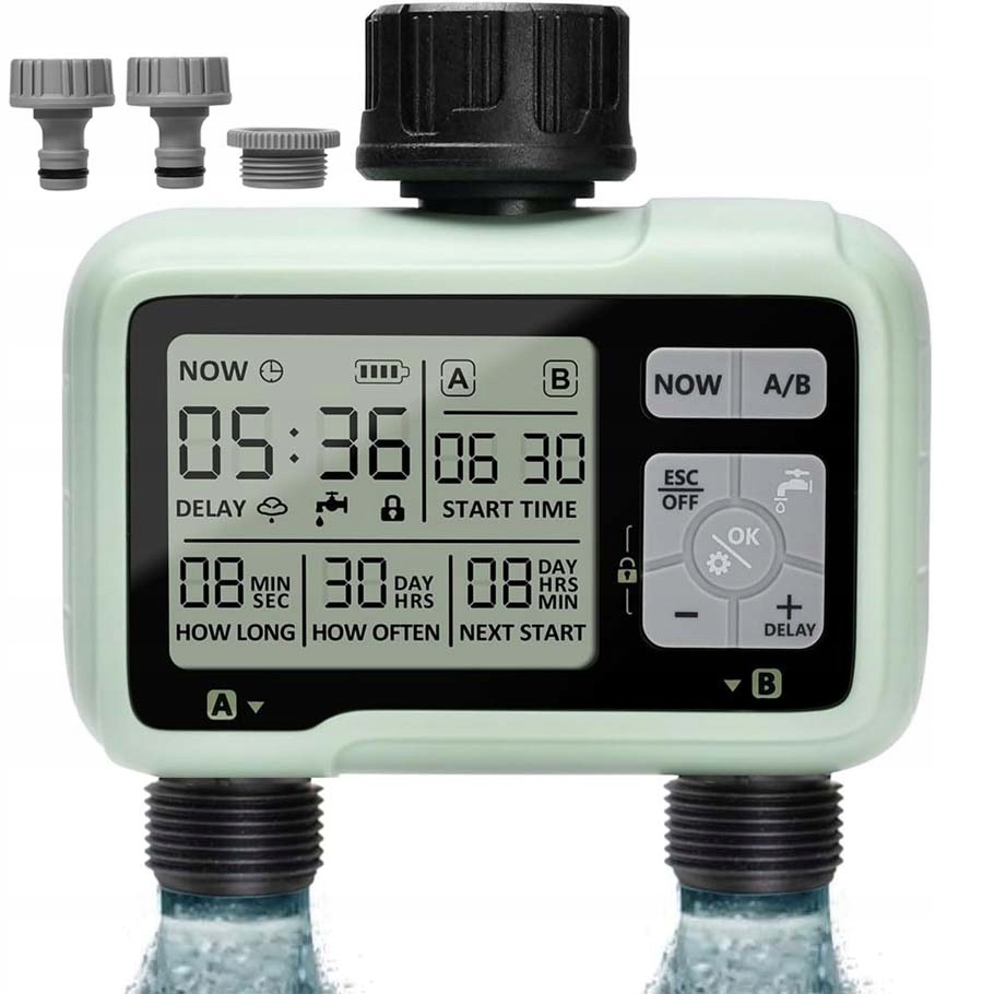 💧💧 💧💧 💧💧pcomputer irriteal 2 виходи - Цей нещодавно модернізований зрошувальний годинник має 2 незалежні клапани. Встановіть час початку, тривалість та частоту виходів A/B відповідно до різних вимог системи зрошення. Час зрошення становить від 1 до 59 секунд або 1-99 хвилин, а частота зрошення 1-23 години або 1-15 днів.