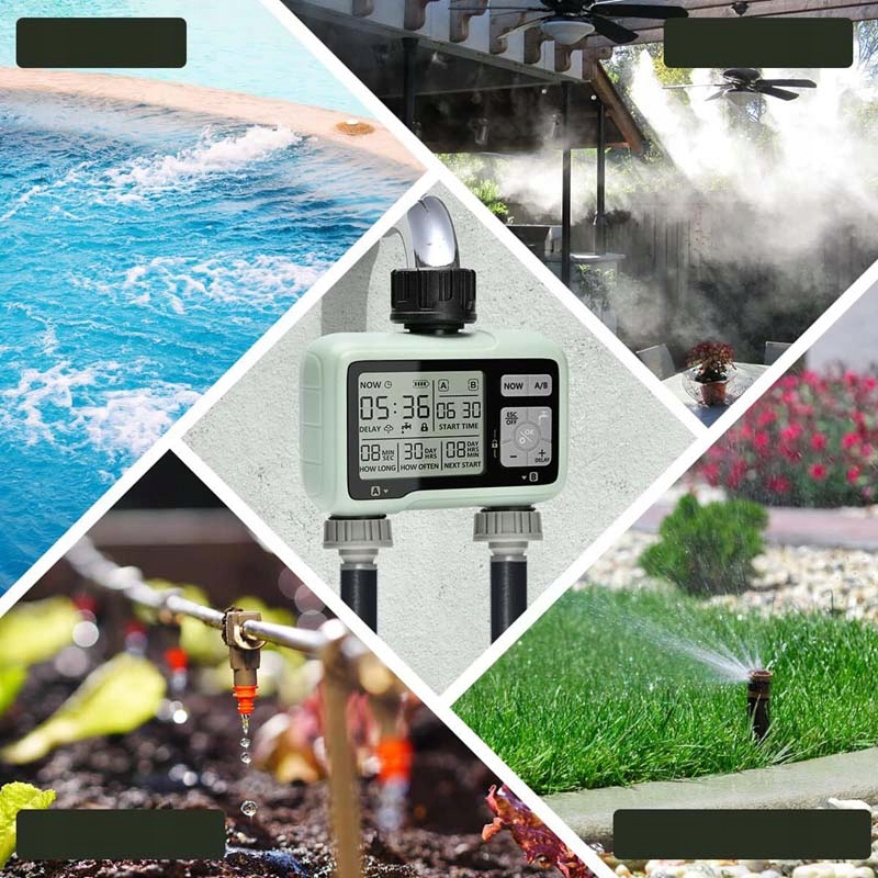 Система зрошення: Ручний режим дозволяє негайно використовувати зрошення, не перериваючи зарезервовану процедуру зрошення. Увімкніть режим затримки дощу, який може зупинити програму зрошення на деякий час, щоб уникнути надмірного поливу та непотрібних відходів, і заощадити багато води в дощові дні. Режим блокування перед дітьми запобігає випадковому приземленню таймера спринклера дітьми та активності домашніх тварин.