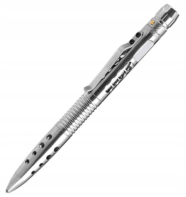 - Це приклад вдалого пристосування повсякденного предмета для самооборони, ІНСТРУМЕНТІВ, корисних у будь-який момент, ЛІХТАРИКА, який завжди під рукою, ВІКНА, якщо ви зачинилися в машині після ДТП, РУЧКА, щоб записати необхідну інформацію, ОТКРИВАЧКА, КЛЮЧ, ВИВІРТКА, СКРЕБОК, ТЕРКА...