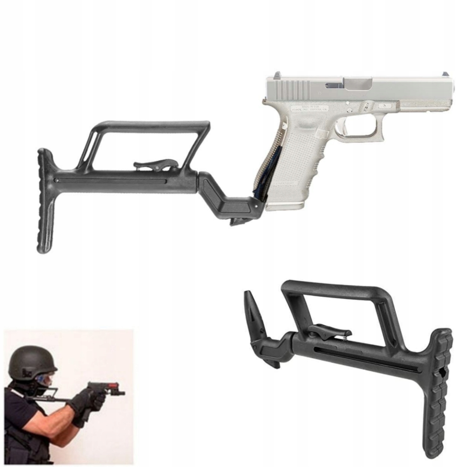 ✅ ✅ ковзання призначене для пістолетів Glock і є дуже компактним тактичним прикладом, виготовленим із стійкого чорного полімеру.