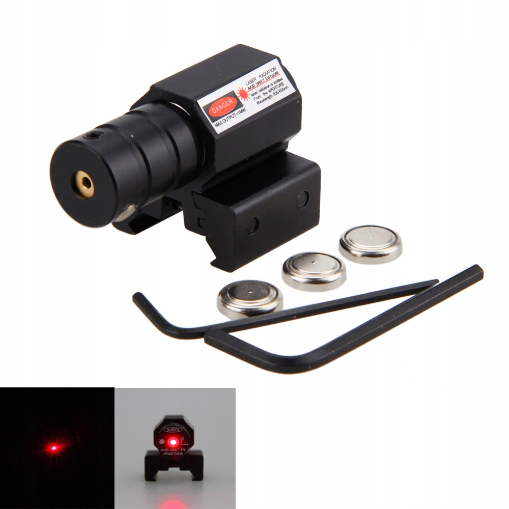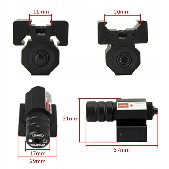 лазерний приціл - червоний лазер - для рейки 11-13/ 18 - 22 мм. 4 регульований збірник для рейки в діапазоні 11-13 мм і 18-22 мм.