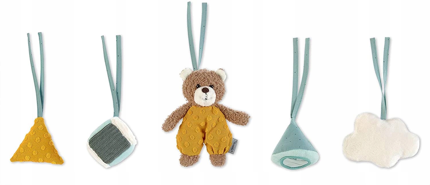 Бен -підвіски з плюшів, джерсей та полібавло. З храпочкою, шелестром та дзеркалом, яке підтримує розвиток вашої маленької скарбниці. /b> З петлею ви можете мити при 40 ° C