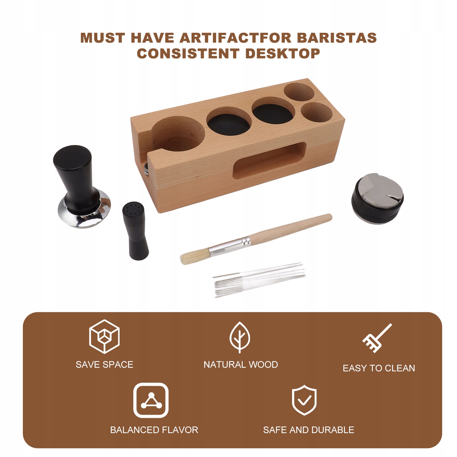 4. Що ви отримуєте: цей комплект станції для трамбування кави включає 1 дерев’яну основу, 1 тампер для кави, 1 пензлик, 1 дозатор кави, 1 голку для дозатора кави та 1 моток кави.