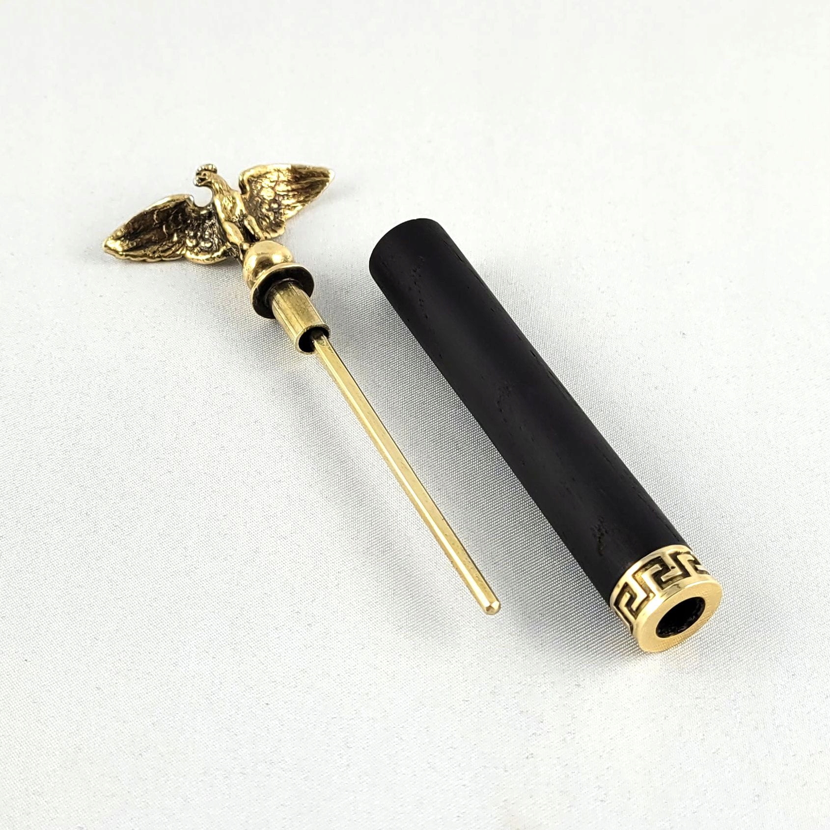 Унікальний тампер для труб, виготовлений вручну в ювелірній майстерні з чорного дуба (корпус) та оцинкованої латуні (декорації). Ексклюзивний аксесуар для вимогливого курця трубки, тканинний чохол у комплекті.