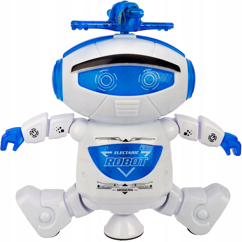 Робот рухає руками й ногами, а вогники ефектно світятьсярізними кольорами. Завдяки коліщаткам, встановленим на ніжках, робот пересувається
