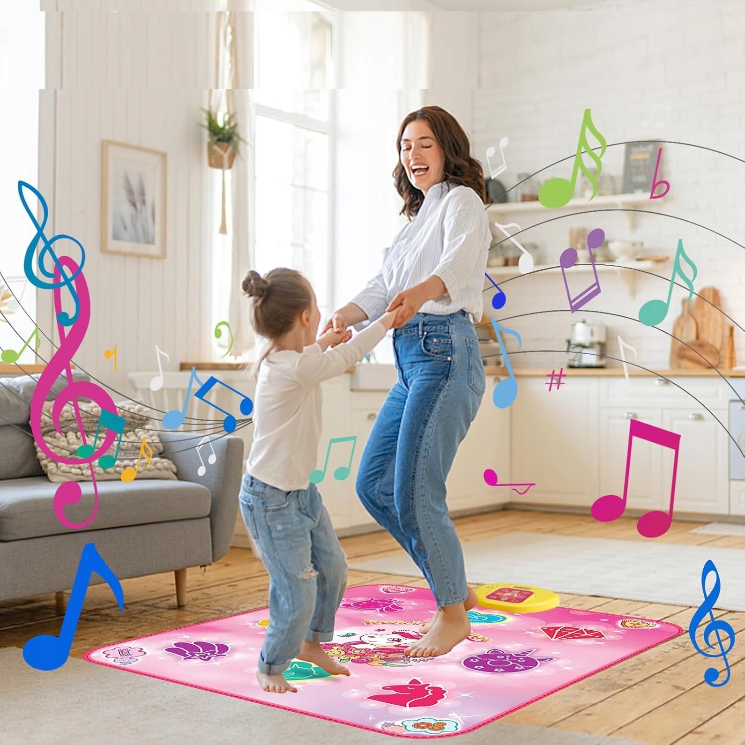The танцювальний килимок з підсвічуванням знайомить дітей зі світом ритму та руху. Кольорові світлові поля реагують на кроки, заохочуючи активну гру та розвиваючи координацію. Динамічні світлові ефекти в поєднанні з музикою створюють привабливе видовище, яке спонукає до танцю.