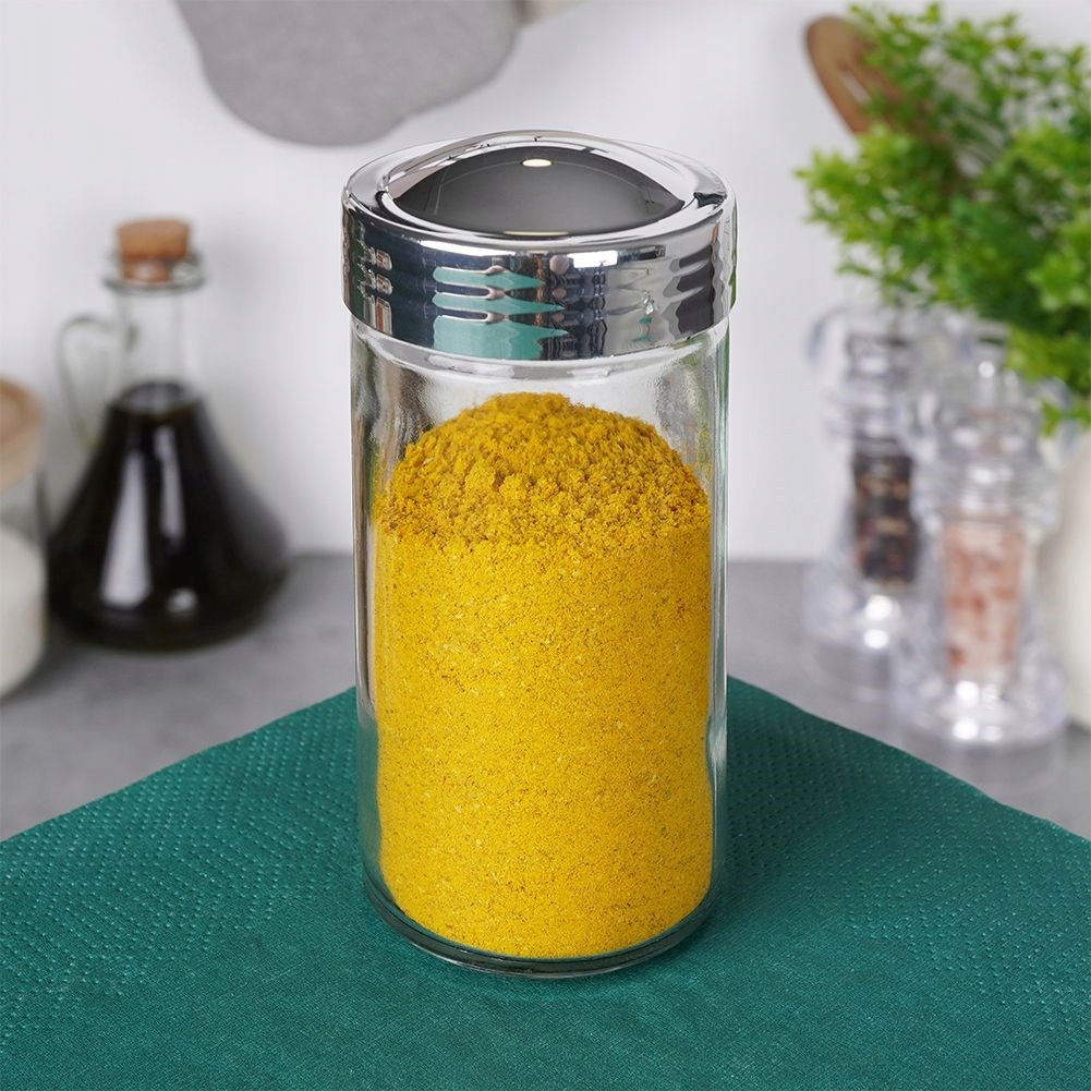 ✅ СКЛО - Ємність із прозорого скла. Він має кришку, що загвинчується, виготовлену з пластику сріблястого кольору, і біле пластикове ситечко. Прозоре скло дозволить легко розпізнати спеції всередині.