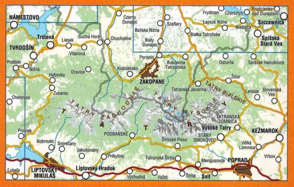 Діапазон карти визначається: Чорний Дунаєць і Поронін на півночі, Наместово на заході, Попрад на півдні, Кежмарок на сході. Територія карти включає: Західні Татри, Високі Татри та Бельські Татри.